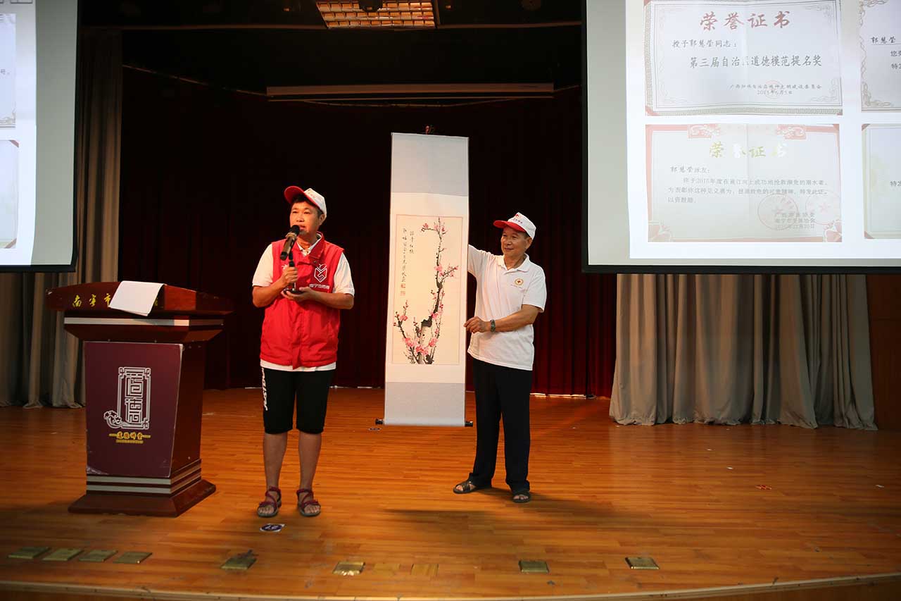 本期道德讲堂活动的主题是“爱岗敬业,无私奉献”通过自我反省、唱歌曲、学模范、诵经典、谈感悟和送吉祥六个环节,感受道德力量。其中,在“学模范”环节,“新中国60华诞平凡好人”、自治区红十字优秀志愿者、南宁市五星级志愿者、自治区道德模范、抗癌英雄郭慧莹与大家现场交流分享,传扬“乐观顽强、乐于助人、乐于奉献”的精神。郭慧莹在与病魔抗争的同时还用自己的亲身经历鼓励帮助其他病人,同时,她还是南宁市的水上救生员,至今已经救起落水者近10人。郭慧莹的乐观顽强、乐于奉献深深打动了在场的每一位听众。大家纷纷表示要向英雄学习,服务读者、奉献社会、奉献爱心,将雷锋精神和能帮就帮的精神不断传扬下去。