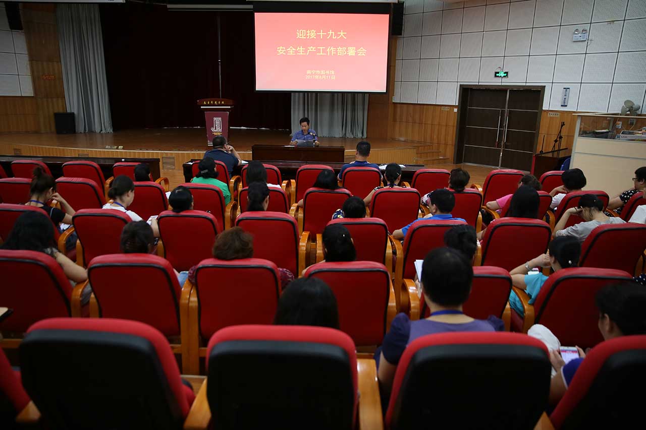 8月11日,南宁市图书馆召开迎接十九大安全生产工作部署会,认真传达学习自治区安全生产委员会办公室关于认真贯彻落实陈武主席重要指示精神全力做好安全生产大检查工作的通知精神,并就我馆十九大召开前期的安全工作进行了安排部署。会议由分管安全生产工作的党支部副书记廖集光同志主持,全体干部职工参加了此次会议。