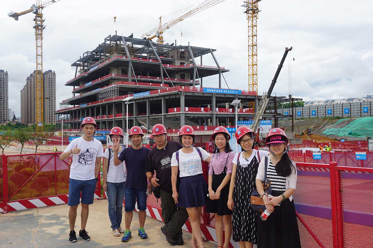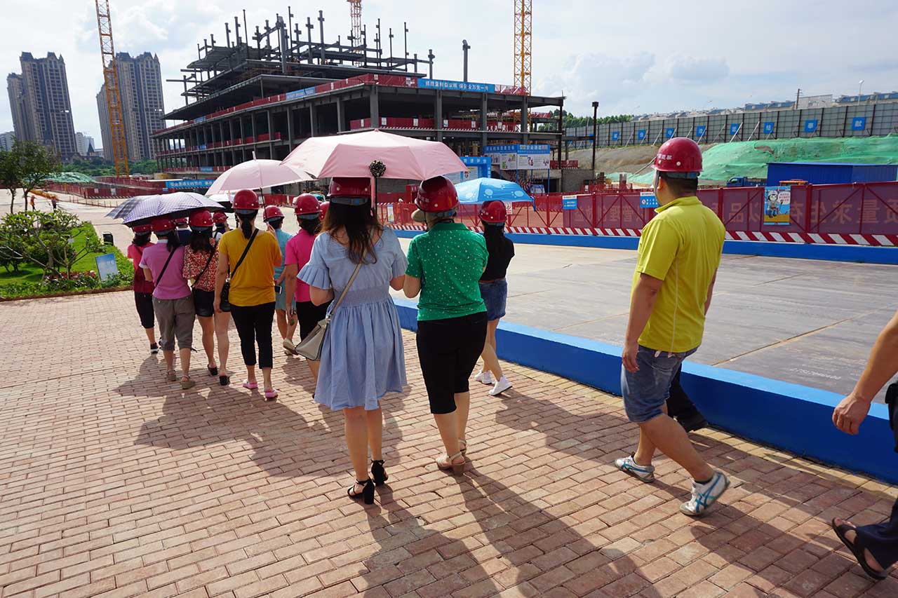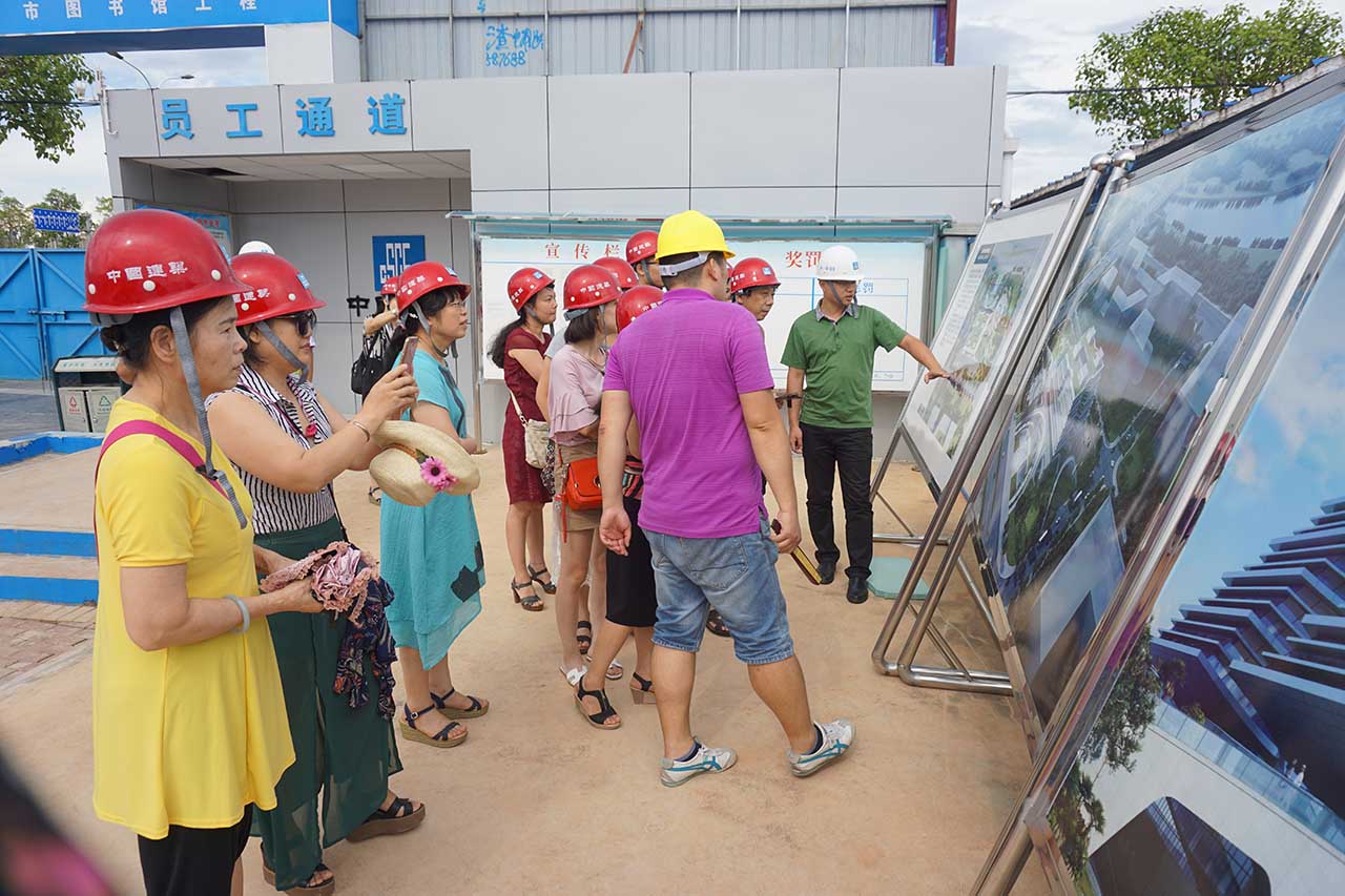 最后一站是参观我馆位于五象新区玉象路和玉洞大道交叉路口的正在紧张而有序施工的新馆项目工地,该项目由中建八局第二建设有限公司承建,目前新馆大楼主体轮廓初显,钢结构主体将于8月底完工。在新馆办同事的带领下,我馆职工听取了工地负责人对新馆项目及周边环境、新馆工程建设进展的详细介绍,职工们对新馆工地有了一个全景式的了解,同时也对中建八局二建公司严格的项目管理制度、建筑工人严谨的工作态度留下了深刻的印象。面对新馆这座拔地而起即将开放的现代化建筑,职工们颇为激动,对项目引入自然采光、雨水收集、太阳能利用等先进技术大加赞赏,自豪感油然而生,对新馆未来的发展充满了信心和希望。