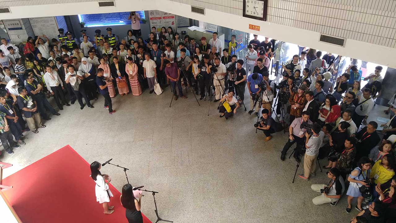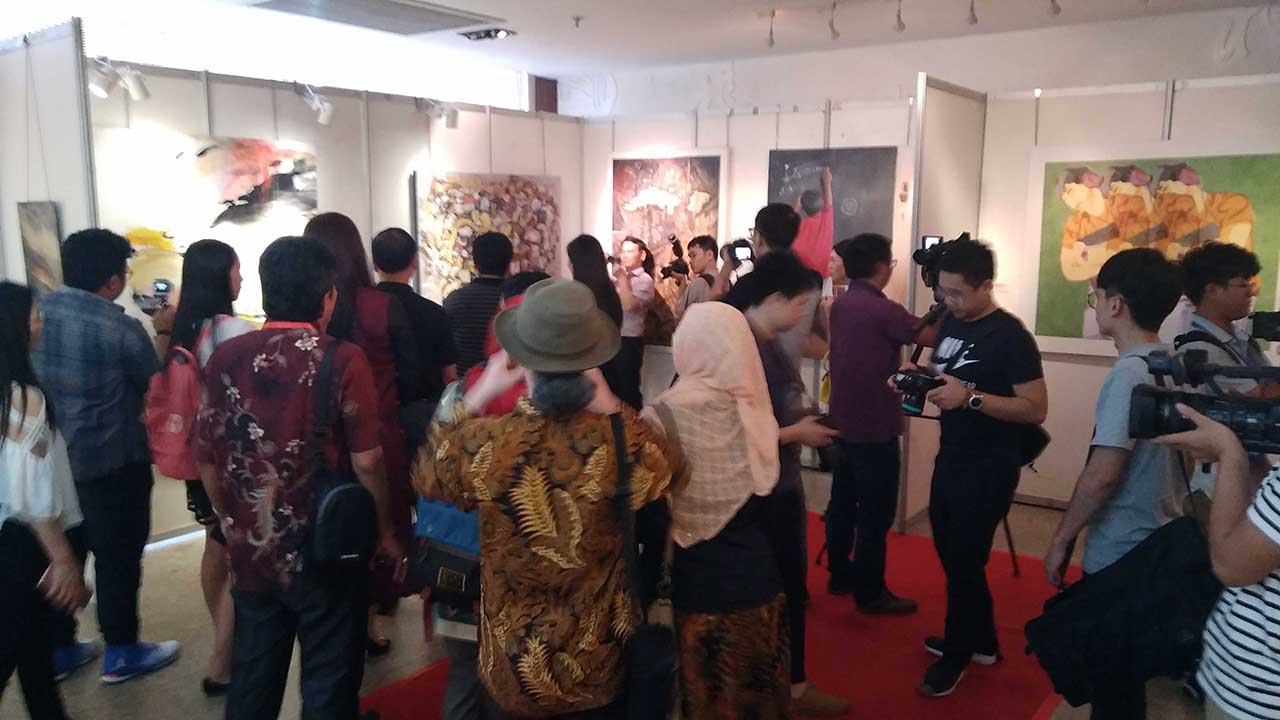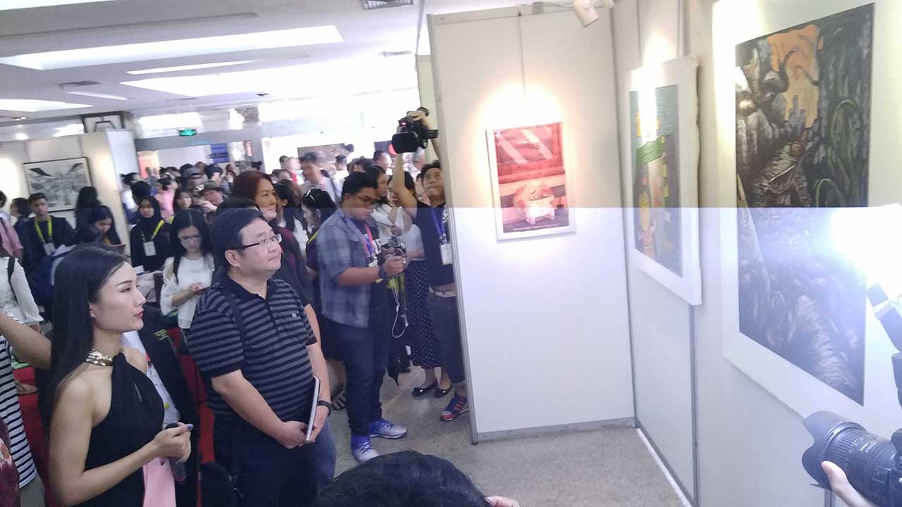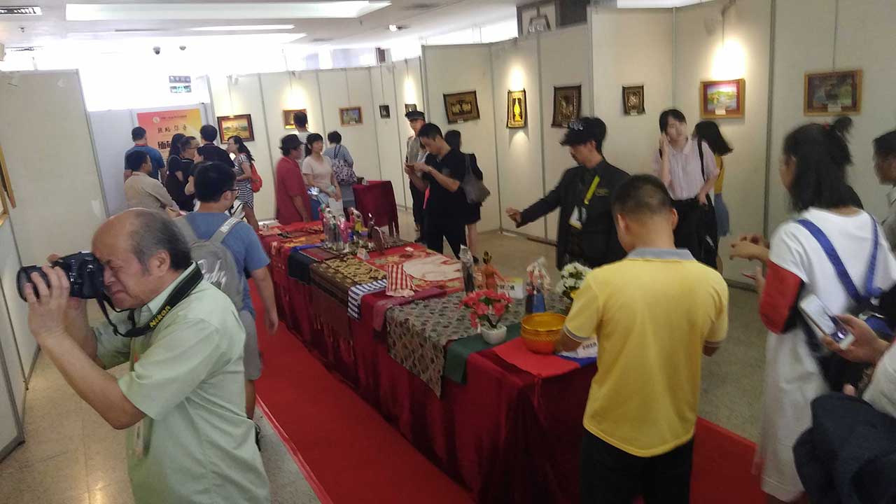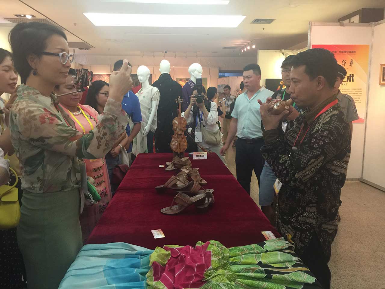 本次艺术展邀请到五个国家带来展品,分别是印尼、老挝、缅甸、泰国和中国。这也是首次邀请到这么多个东盟国家,一起在中国进行艺术交流和艺术分享,是非常难得的一场艺术聚会,是丝路文化的碰撞和交流。展品有油画,也有五国的民间非常精致的手工艺品,他们代表了中国和东盟艺术家的智慧和辛勤。此外还有专门开辟的中国红线女展厅,里面的展品主要是反映世界有名的粤剧演员红线女为人民服务的历史记录。当天参加活动的观众近五百人。广大观众被这些富有特色的艺术品的魅力所深深吸引,在展品前驻足品赏,久久不愿离去。