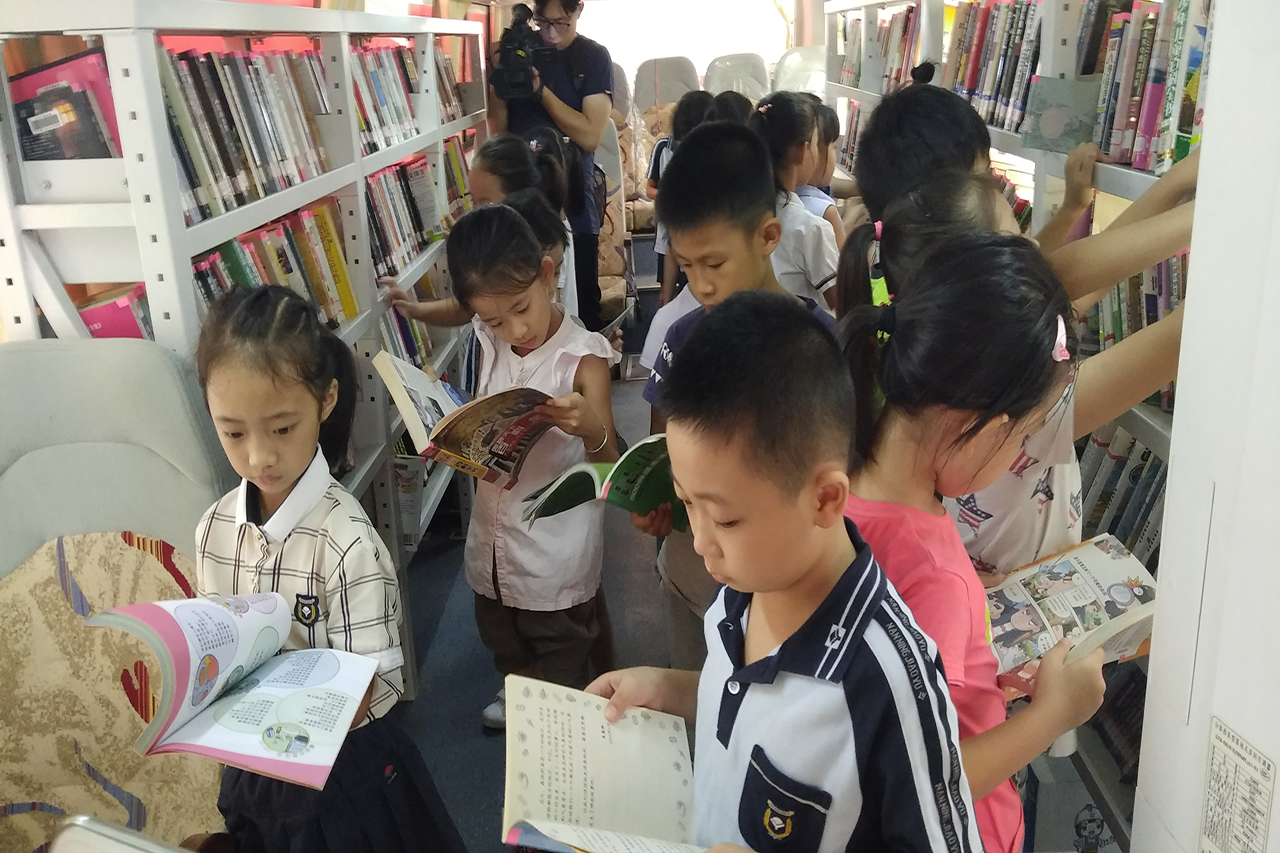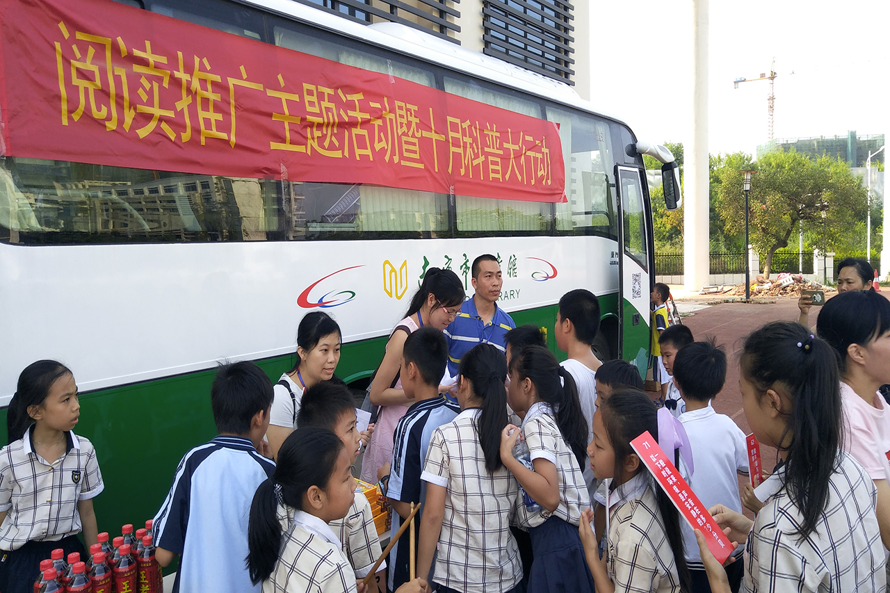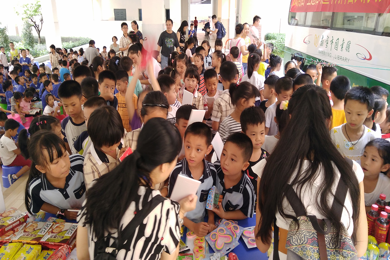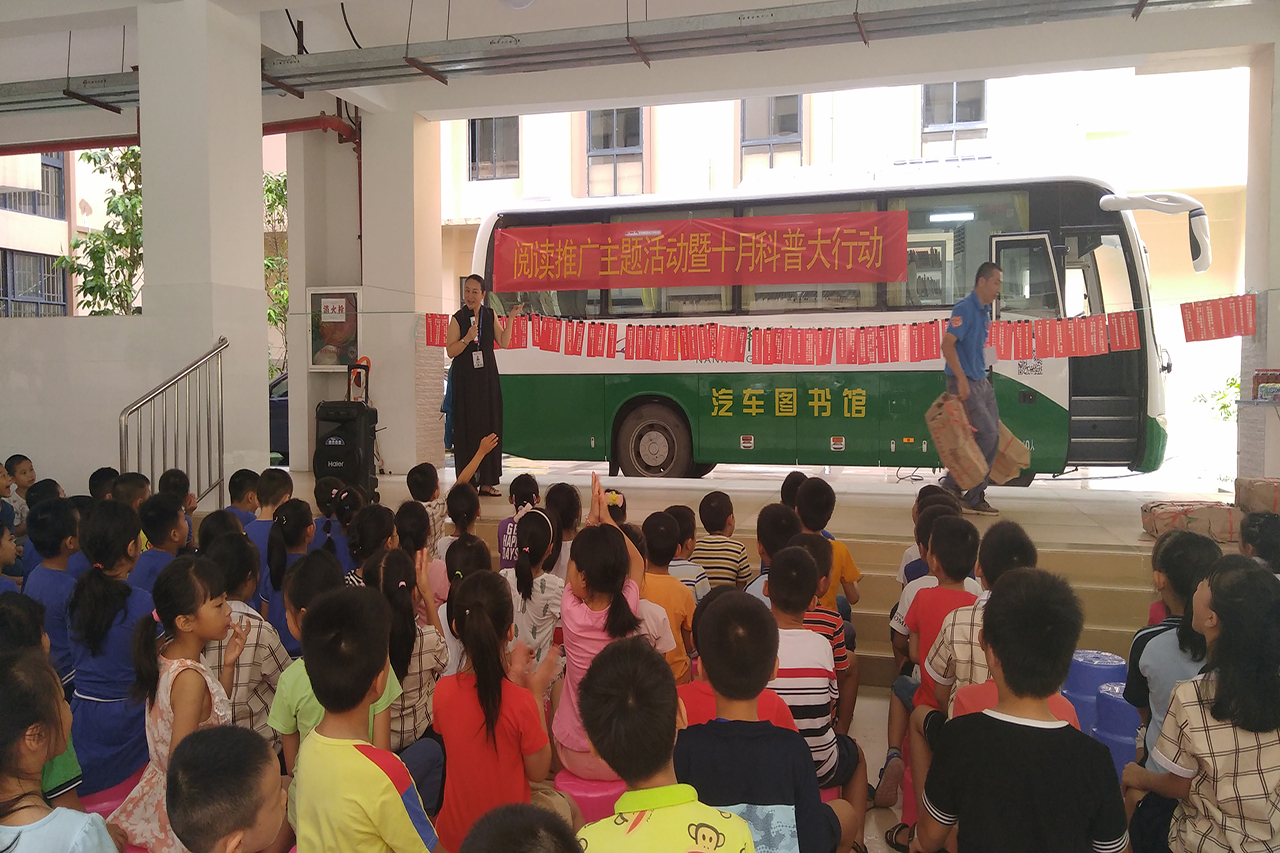 南宁市图书馆辅导部为学校送去了一批图书,深受孩子们喜爱;读者活动部为学校带去的科普知识及600份有奖竞答奖品吸引了众多孩子的参与,大家积极而有序,通过自己平日积累的科普知识努力答题,都得到了自己心仪的小礼物;同时,南宁市图书馆流动图书车开进学校为广大师生提供阅读服务,书车上,操场上,走廊里,到处都是孩子们沉浸于书海中的身影,其间,不乏热心老师领读的温馨景象。