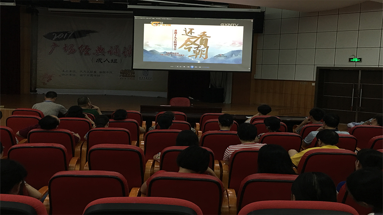 为进一步宣传我市经济社会发展所取得的成绩,唱响主旋律、弘扬正能量、提振精气神,营造良好的社会氛围,迎接党的十九大胜利召开,9月22日下午,南宁市图书馆60多名干部职工齐聚多功能厅观看由中央电视台制作的迎接党的十九大特别节目《还看今朝•广西篇》。
