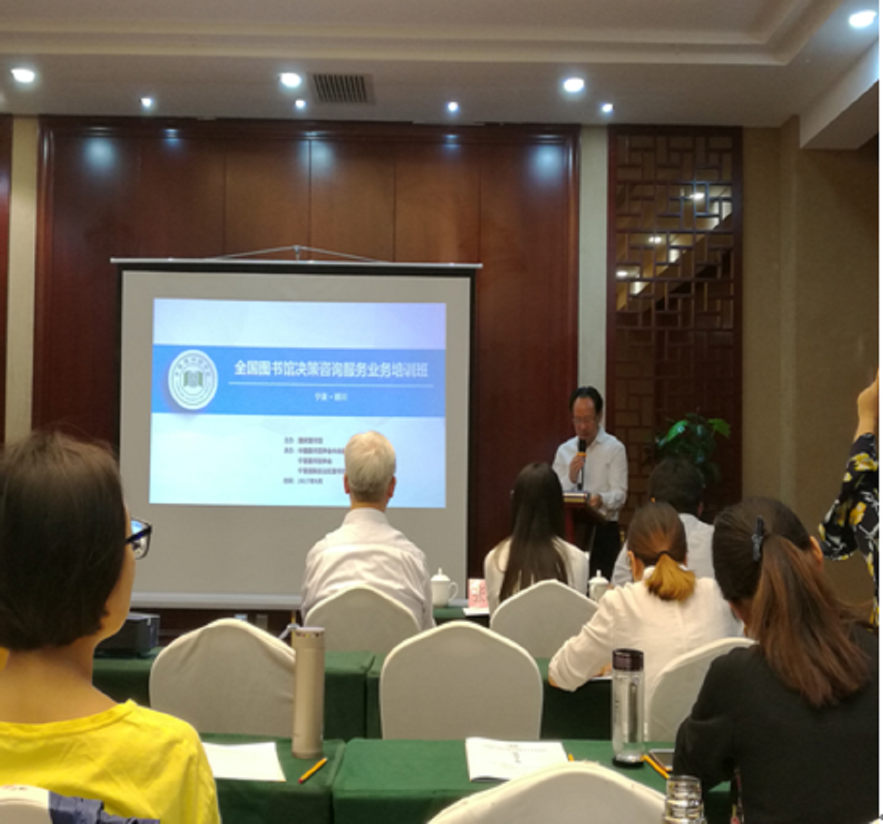 培训课程围绕基于文献信息的决策咨询服务,以专题报告、案例分析的形式,通过政策解读与趋势发展、需求解析、决策咨询服务案例交流三个模块内容,邀请了原上海图书馆馆长、上海政府参事、中国图书馆学会副理事长兼学术研究委员会主任吴建中,广西桂林图书馆副馆长曹旻,同方知网公共服务行业知识管理公司总经理成鑫等8位专家、学者讲授了《新媒体时代的图书馆发展趋势》、《多元化开展决策咨询服务——广西桂林图书馆案例分享》、《大数据背景下的精准化决策咨询服务》、《浅谈中央国家机关综合信息的需求和特点》、《地方立法程序及宁夏政府立法的主要做法》等课程。