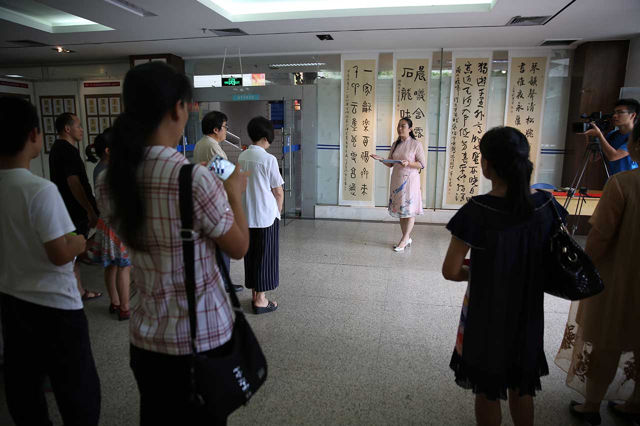 南宁市图书馆特别邀请著名书法家宁一全先生携带着他的书法作品到馆开展“欢度国庆节·喜迎十九大”书法专展活动,通过一幅幅字体各异的高端书法作品,歌颂祖国的美好生活,留下宝贵的墨香。举办这场展览的宗旨正是传承祖国传统文化,弘扬爱国主义精神。
