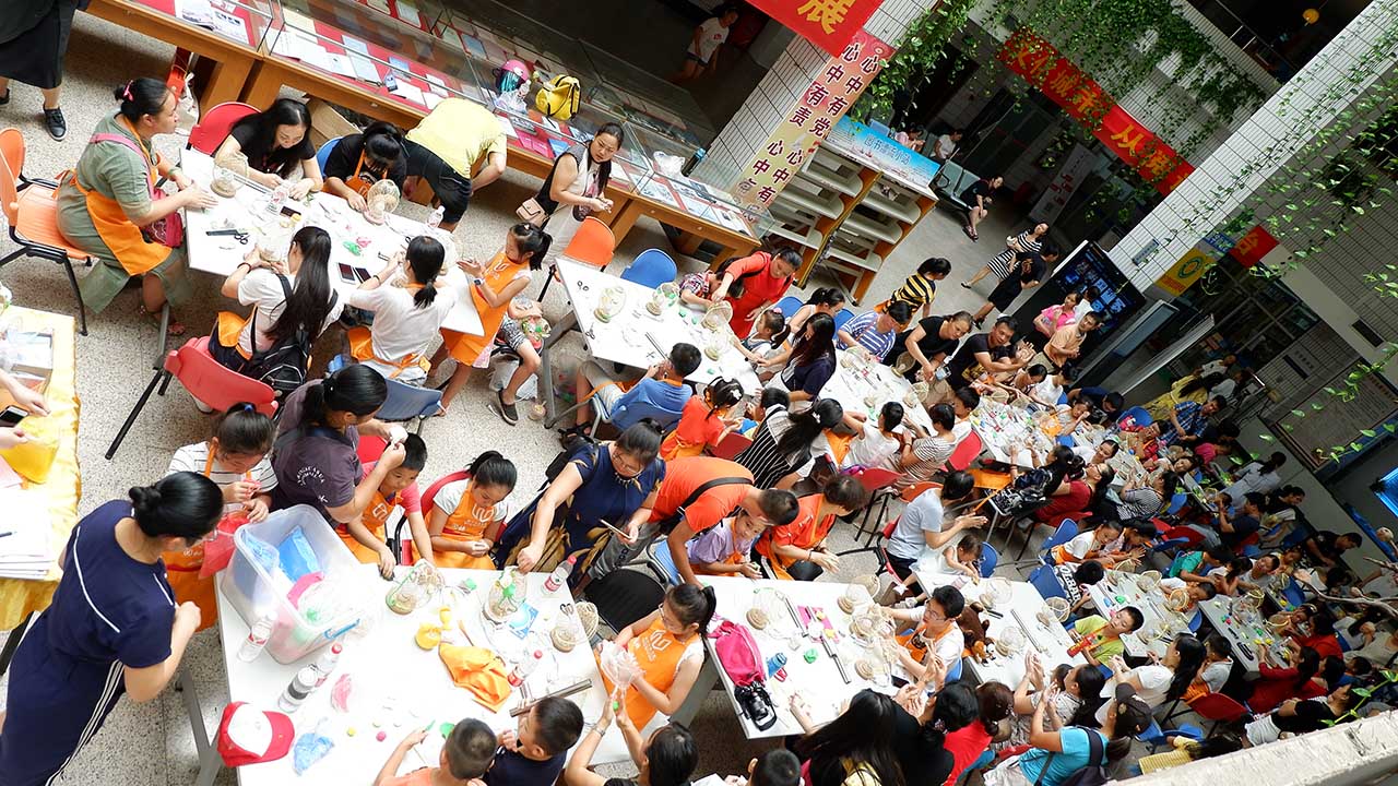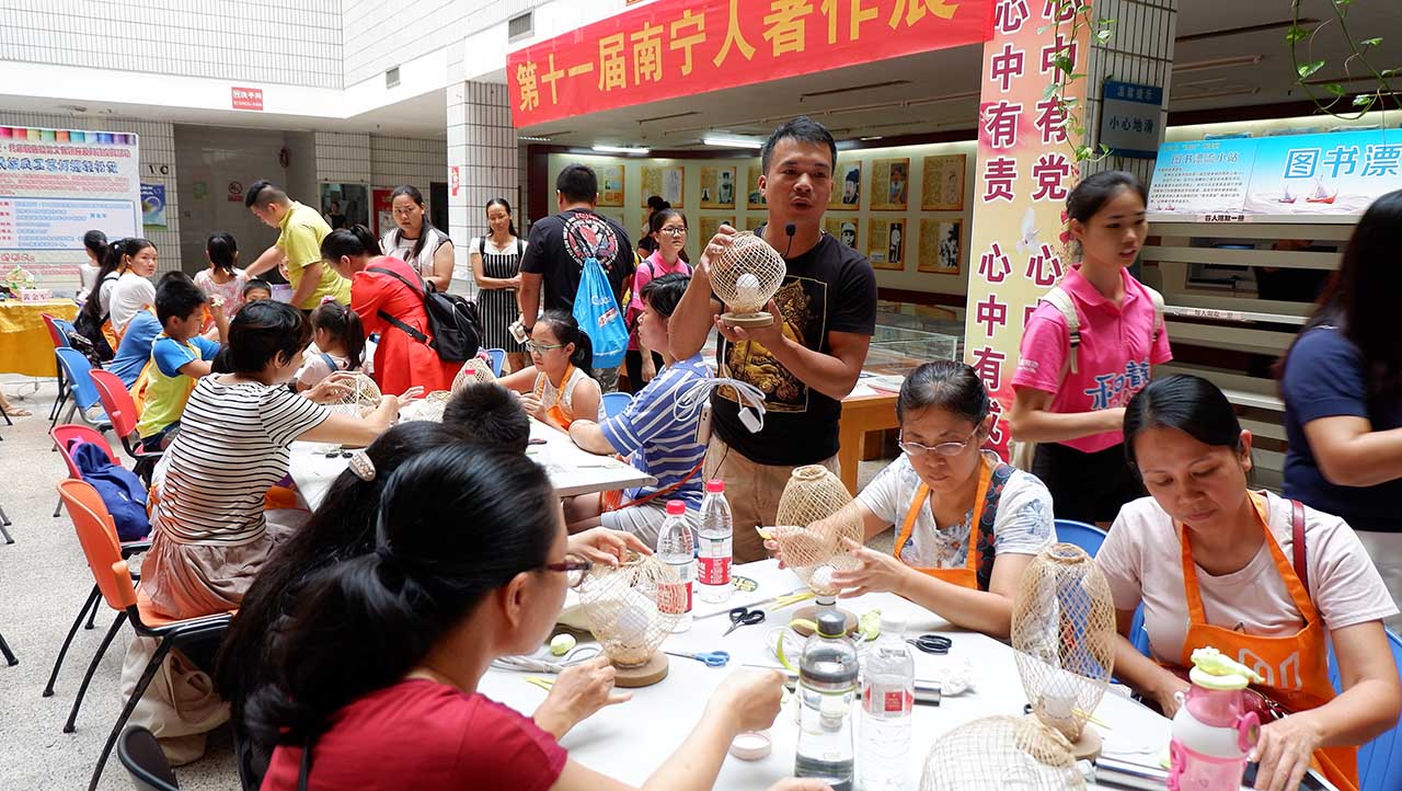 此次活动由南宁市图书馆、南宁市青苑画室和咪咕阅读联合举办,活动主题是喜迎国庆节·手工制作民族特色工艺灯笼阅读实践及现场展示,通过前期招募迎来了现场60多位参与者和他们的家庭成员逾200人参加了活动。