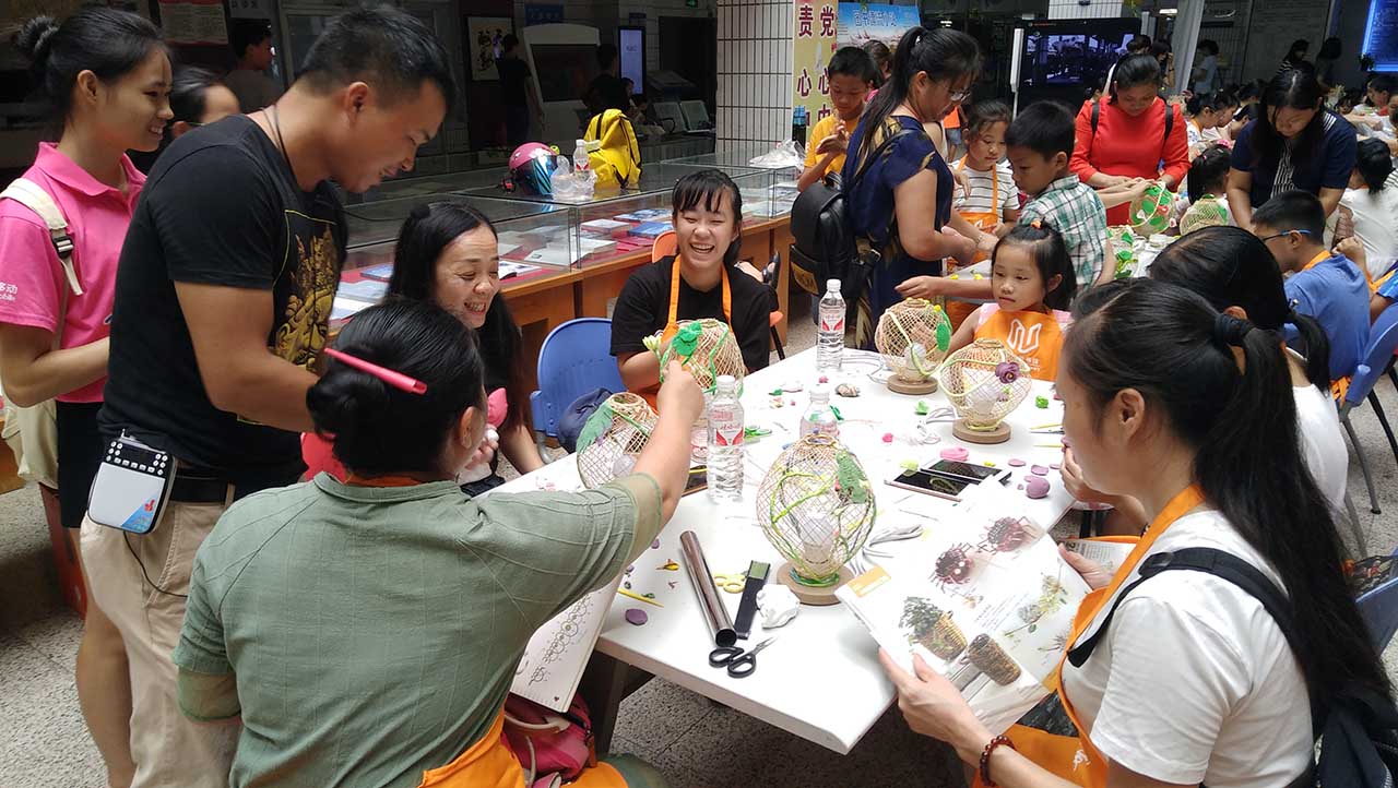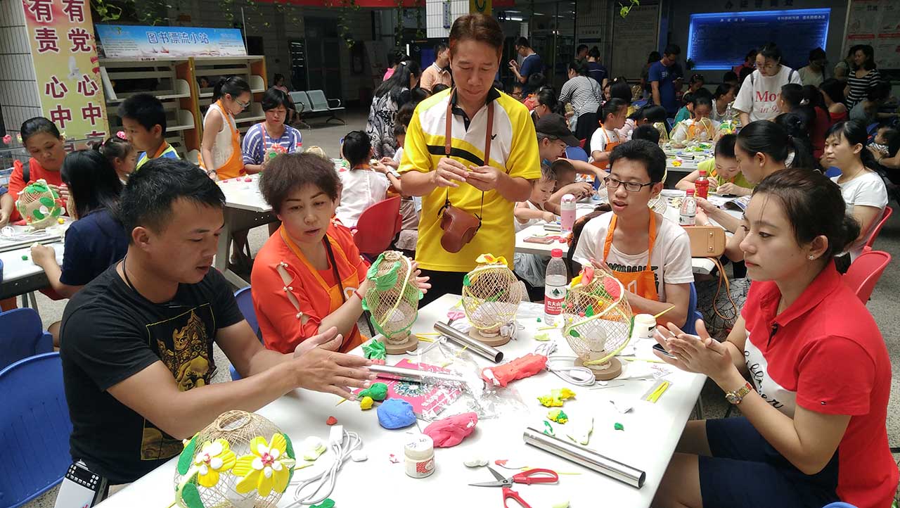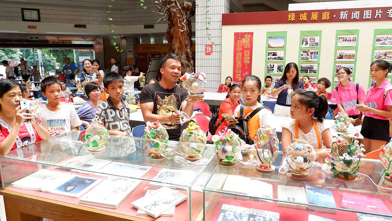 为迎接中华人民共和国成立68周年,传承民族技艺,使广大市民在祖国可喜的发展中进一步加强对民族工艺文化的认识,2017年10月2日,南宁市图书馆在双节的快乐氛围中,通过阅读实践活动参与制作手工艺品,使大家切身体验了一把传统手工技艺的独特魅力。