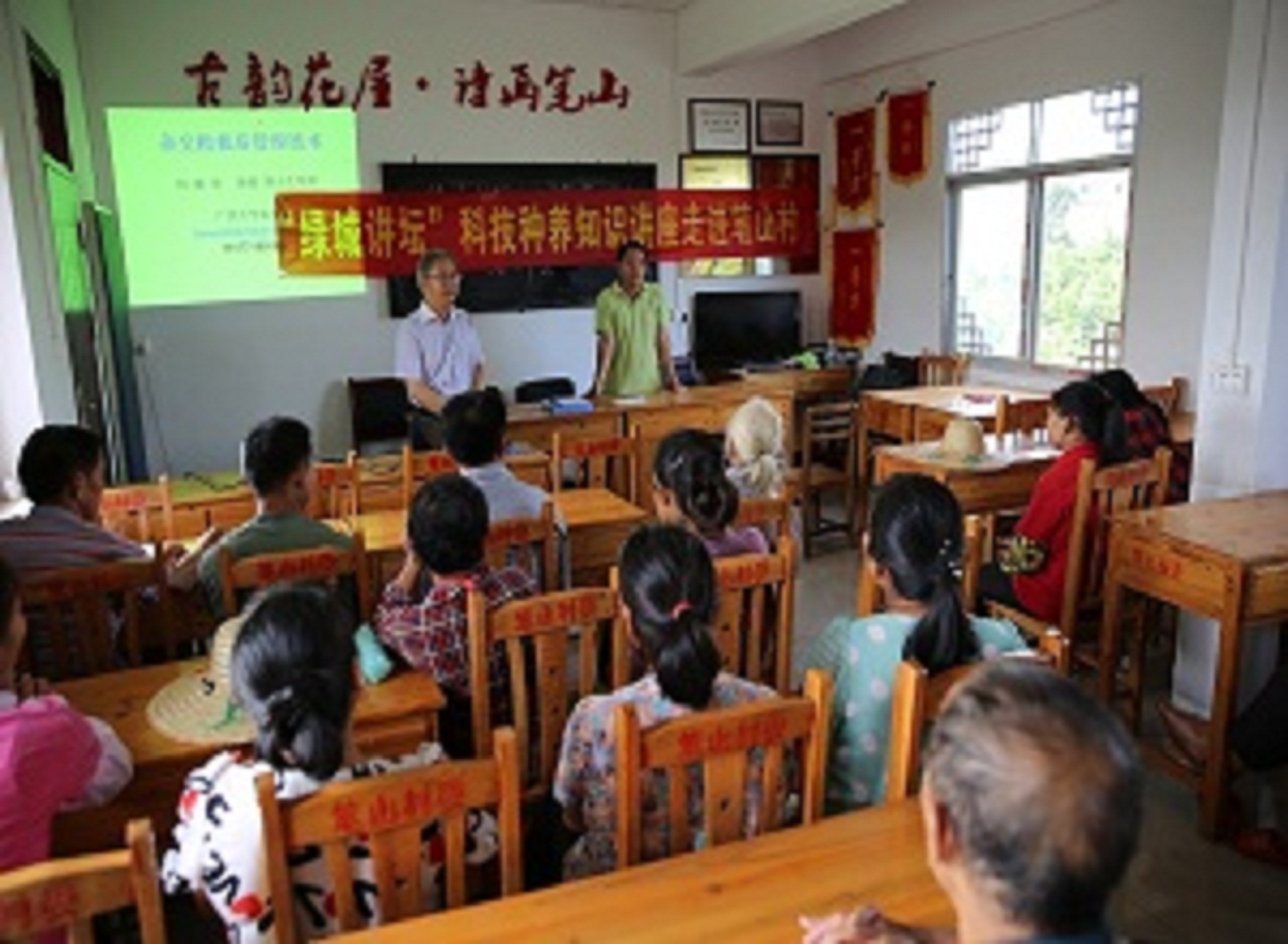 此外,南宁市图书馆结合自身特点,也根据村民的切身需求,当天邀请了广西大学农学院副院长何新华教授就柑橘的科学种植与病虫害防治进行现场讲座。作为国家果树学科带头人的何教授还特地为村民们印制了科学种植与病虫害防治宣传册并免费向村民发放。当下,正值柑橘病虫害高发季节,何教授也就病虫害起因、药物喷洒的时机和方式等方面的疑问进行了一一解答。