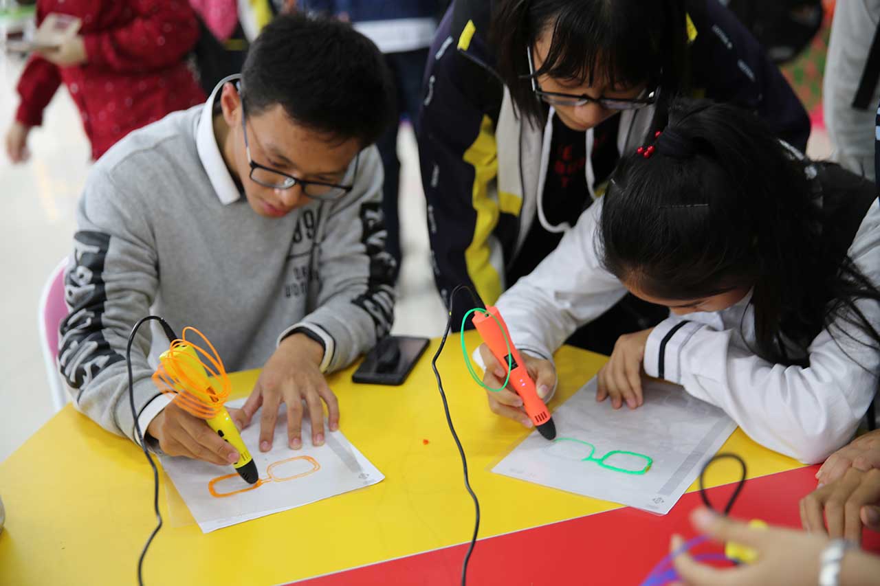 当天,同学们来到中关村创新示范基地同创三维创客教育基地,孩子们通过观看实物模型、动画视频、虚拟仿真,完成了学习、探索以及开拓思维的全新尝试。在现场老师的引导和介绍下,孩子们详细了解了3D打印机的工作原理,感受了科技创新产品带来的便捷与惊喜,同时还纷纷亲身体验3D打印笔制作工艺的乐趣,更在VR体验区,无人机操作体验区感受到了时下最火爆的科技技术。体验活动