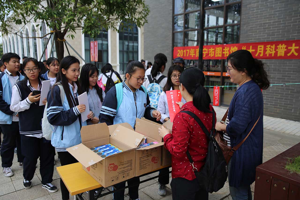 南宁市图书馆自9月开展2017年全国科普日活动以来,陆续推出了科普图片展、科普图书推荐专架、科普阅读活动两进校园等活动,受到各年龄层市民读者的欢迎。10月20日下午,南宁市图书馆携手南宁市少年儿童图书馆共同组织开展的“十月科普大行动”体验活动在南宁•中关村创新示范基地拉开序幕,百名中学生参与活动,真切感受了前沿科技的魅力。