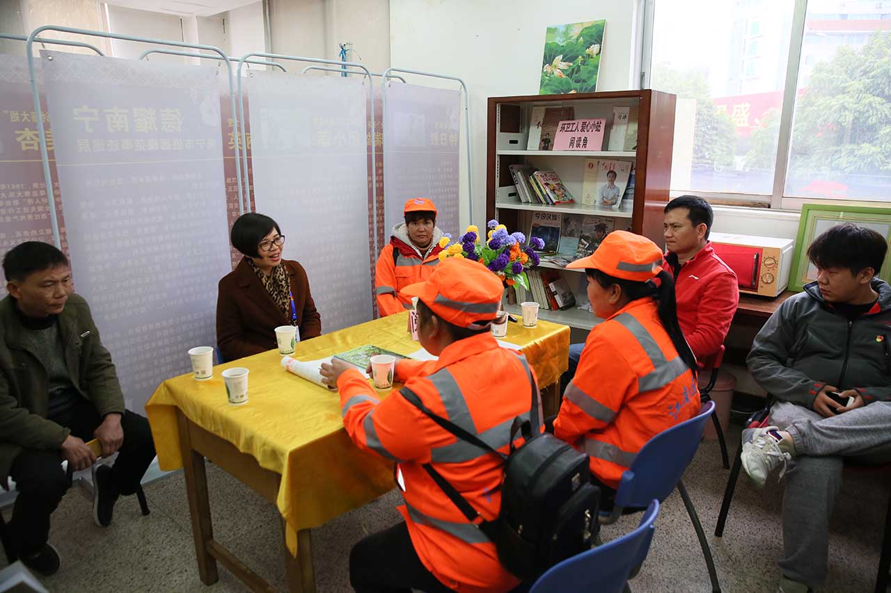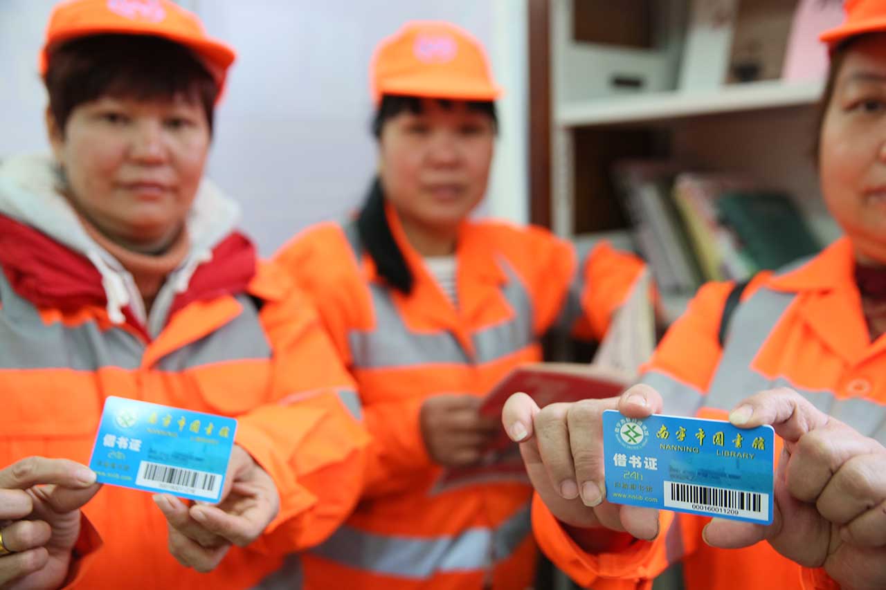 南宁市图书馆“环卫工人 爱心小站”启用当天,来自江南区市政环卫管理站的环卫工人们成为了第一批体验者。南宁市图书馆副馆长蒋桂香向环卫工人代表介绍了南宁市图书馆、“环卫工人 爱心小站”所提供的相关服务,并向环卫工人代表发放借书优待证,还代表南宁市图书馆向广大环卫工人致以新春的祝福。环卫工人们在体验“环卫工人 爱心小站”的阅读氛围时纷纷为该“爱心小站”的设立点赞,他们说:“环卫工人爱心小站”解决了平时工作吃冷饭、无处短暂休息的大难题,让环卫工人们在寒冬中感受到了市图暖暖的温度和浓浓的暖意。