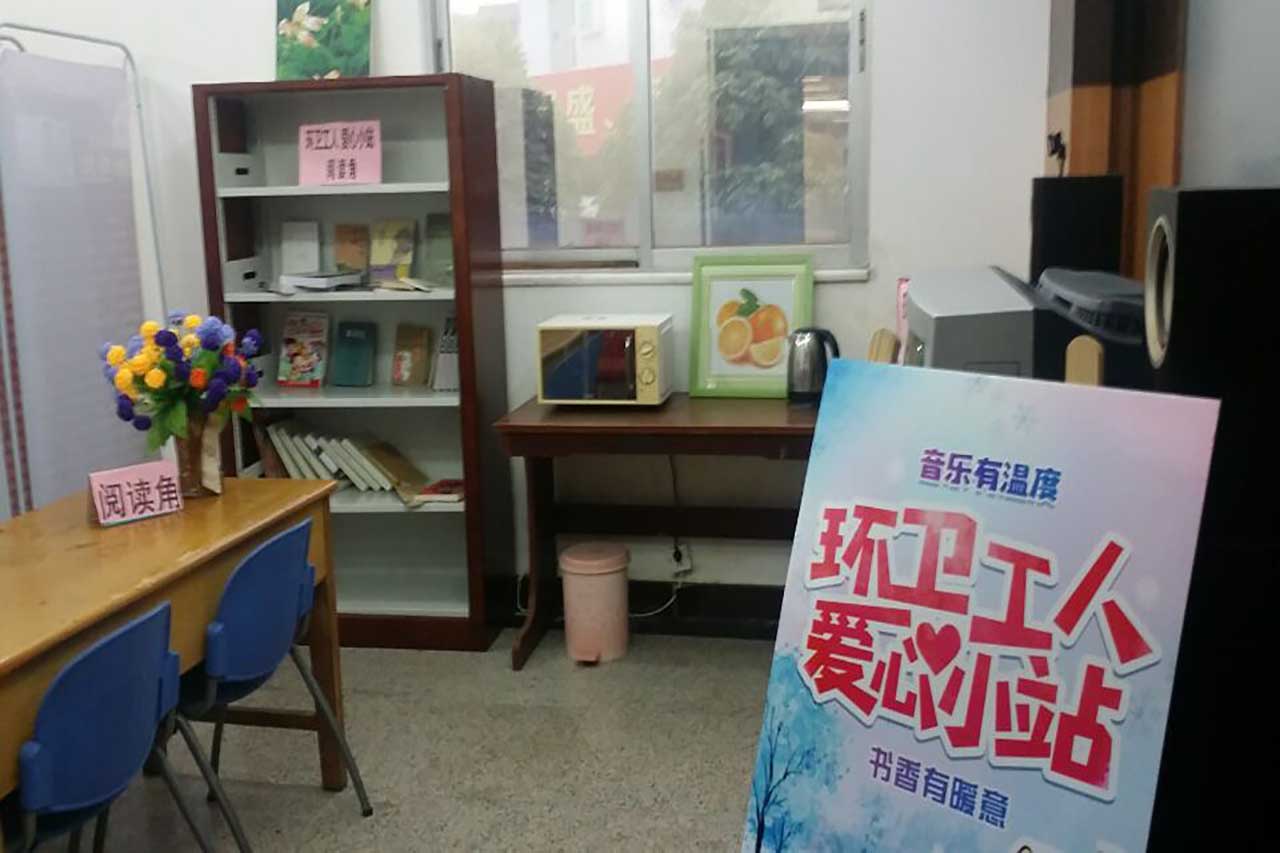 为更好地满足环卫工人需求,南宁市图书馆“环卫工人 爱心小站”内设置了微波炉、烧水壶等小电器以满足环卫工人所需,更精心布置了阅读角,添置书刊、杂志一批以供环卫工人免费共享精神食粮。