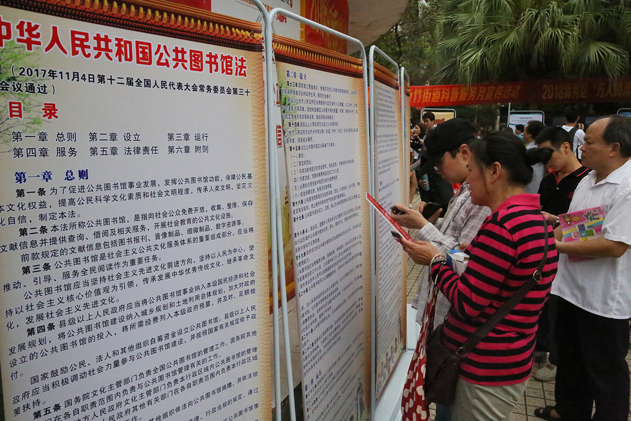 4月23日上午,南宁市2018年“4•23”世界读书日暨全民阅读活动启动仪式新竹社区隆重举行。南宁市图书馆作为本次活动的承办单位,围绕“阅读•与法同行”为主题在现场开展了的一系列文化活动,吸引了大批市民读者参与其中。