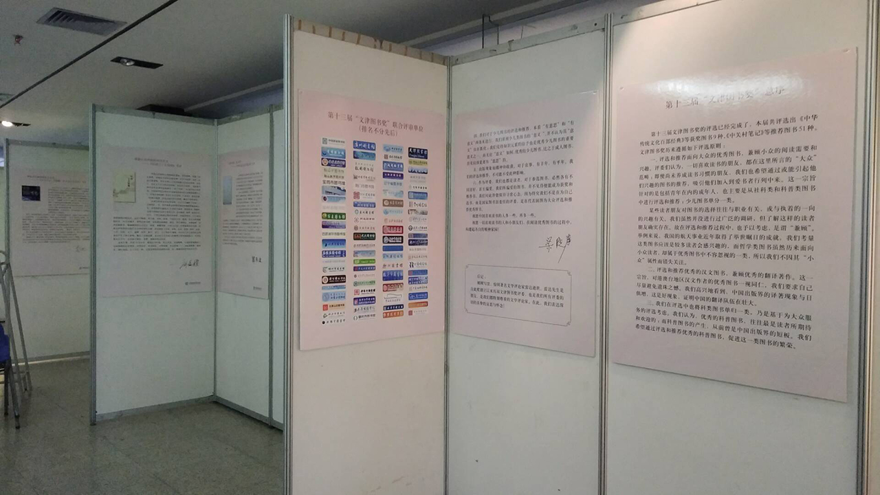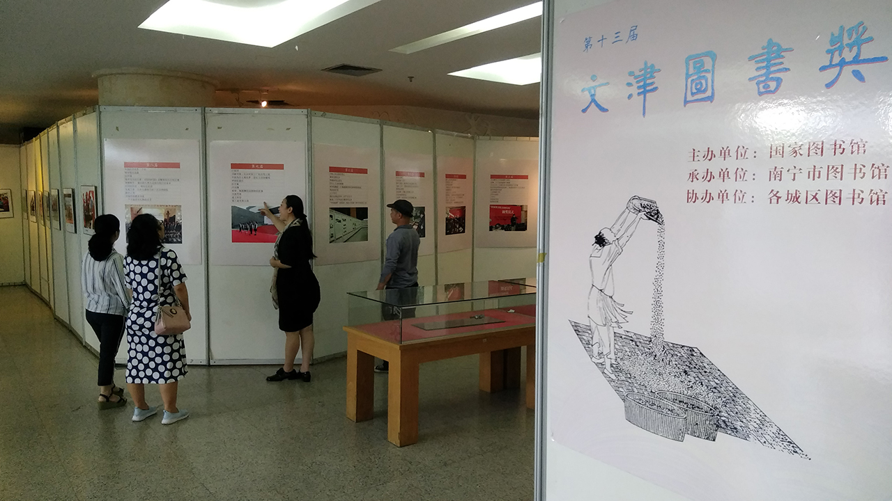 南宁市图书馆根据全民阅读推广工作要求,以下载国图提供的相关资料为准,从4月28日起在该馆艺术展廊举办“绿城展廊”——第十三届文津图书奖巡展。此次展出的32幅展板文图并茂,其中一部分巡展内容率先走进南宁市名歌湖广场与广大市民见面,引来不少关注。