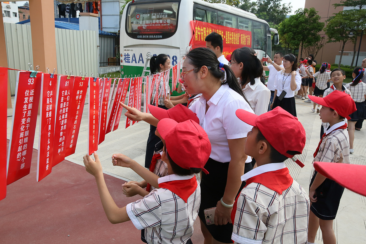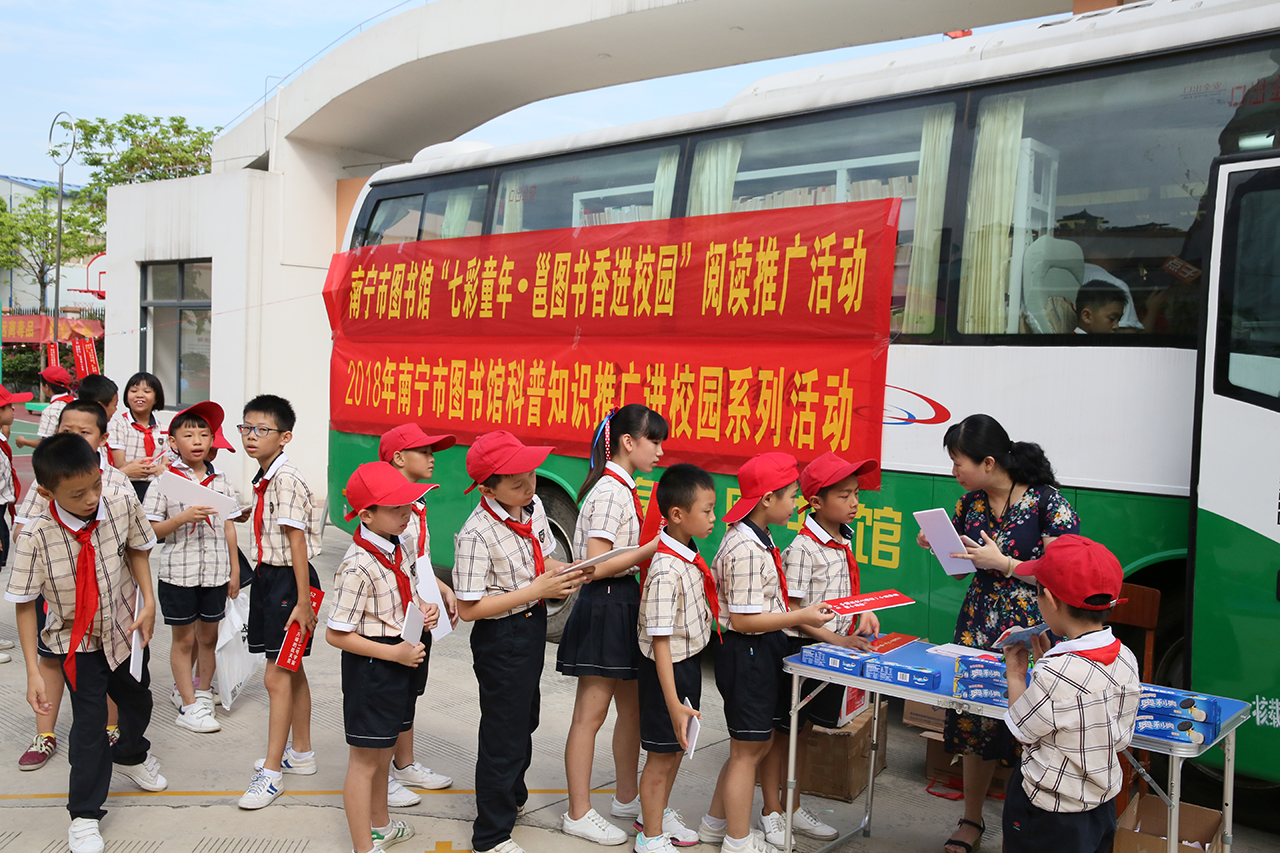 书籍是人类进步的阶梯,阅读也是同学们开拓视野的窗户!南宁市图书馆的汽车图书馆也开到了龙腾路小学的校园,开展的“七彩童年•邕图书香进校园”阅读推广活动、科普知识推广进校园系列活动,与同学们一起庆祝“六一”国际儿童节活动。1000册图书免费向同学们开放阅读。孩子们还积极参与到科普知识有奖问答当中,用自己的聪明智慧赢取精美礼品。