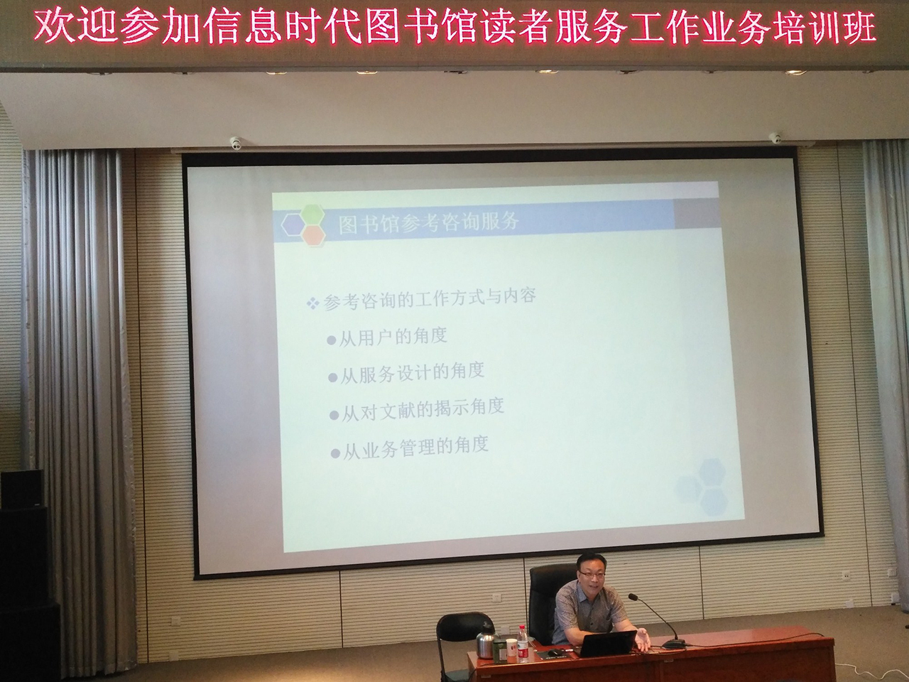 本期培训班旨在解决网络信息时代,如何拓展服务渠道、增加服务手段,为读者提供深层次的文献信息服务等图书馆读者服务面临的新问题。培训期间,全国中小型公共图书馆联合会会长、中国图书馆交流与合作委员会委员、全国图书馆先进工作者郭斌,国家图书馆研究院马涛、参考咨询部副研究馆员刘庆才、业务管理处副研究馆员赵俭、北京东城区第一图书馆馆长肖佐刚等专家学者分别作了题为《互联网思维与图书馆服务的探索》、《图书馆服务项目拓展》、《国内外馆际互借与文献传递》、《基层图书馆阅读推广活动》、《图书馆RFID应用及标准》和《图书馆读者服务应知应会》等6场学术讲座。