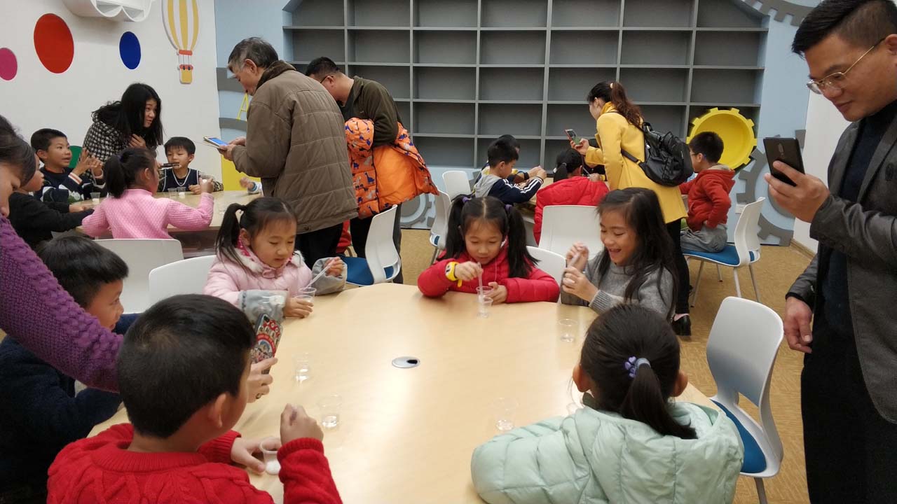 1月20日的科普课堂通过物理化学趣味实验,运用安全的化学药剂,在专业人员指导下,安全操作,配置出洁白的“人造雪”。让孩子们掌握理解物理“吸水特性”原理,吸引未成年热爱科学、崇尚科学。看着晶莹剔透的白雪通过化学反应生成,孩子们惊喜连连,充满着对科普知识的探索热情。