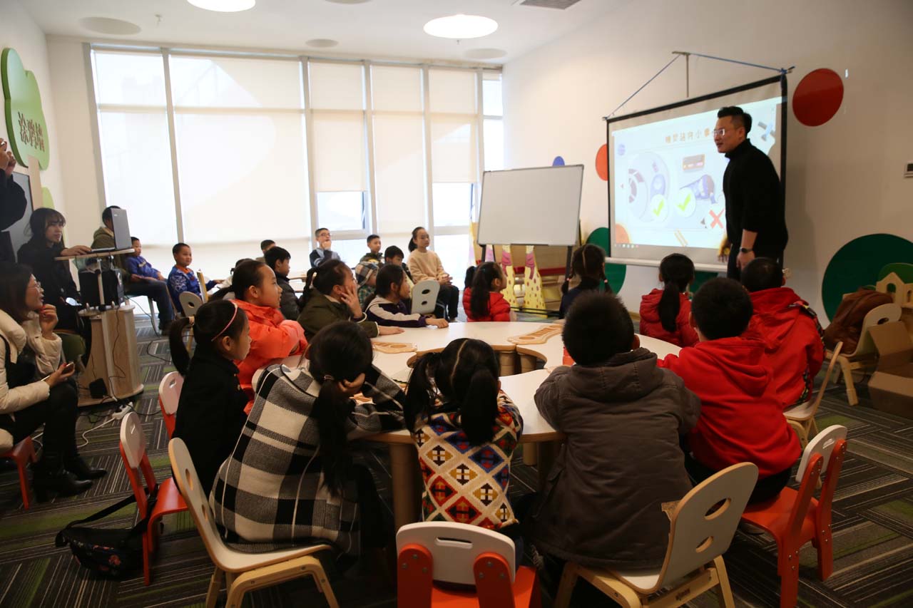在少儿阅览室,“庆祝嫦娥四号登月•太空之旅”童阅森林科普课堂活动也在火热进行,老师以动态讲解和互动问答的形式讲解了航天器是如何由运载火箭送上太空的,为小朋友们介绍了火箭的构造和升空的原理和过程,带领小朋友们一起玩线上组装火箭的游戏。