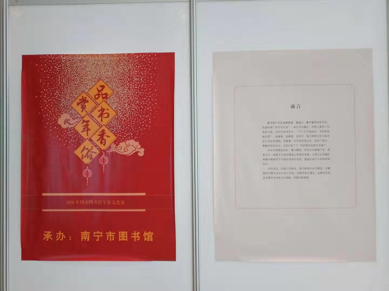 为使广大市民在馥郁的书香中共品中华之年俗,在浩瀚的典籍中窥得年节习俗的传承与流变,重温扎根于心底的年味印记,共勉传承之重任,2019年2月1日至3月30日,南宁市图书馆在一楼的城市客厅展区举办“品书香·赏年俗——2019年国家图书馆年俗文化展”展览活动,活动共展出31幅展品,为读者带来了中国人最为传统的年俗风貌。