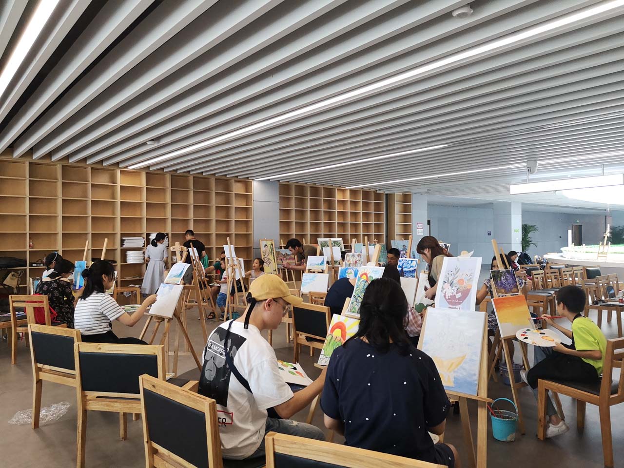 活动即将结束之际,图书馆人和主讲嘉宾组织读者有序参加了绘画艺术体验,读者们各自选取一种自己感兴趣的绘画方式,如扇面画、布面丙烯画、石头画等,临摹老师事先准备好的绘画成品,每一位参与活动的读者都充分发挥了自己的艺术细胞,虽说是临摹,但也加入了自己的创意,甚至“零基础”的读者画出的作品同样令人惊艳。