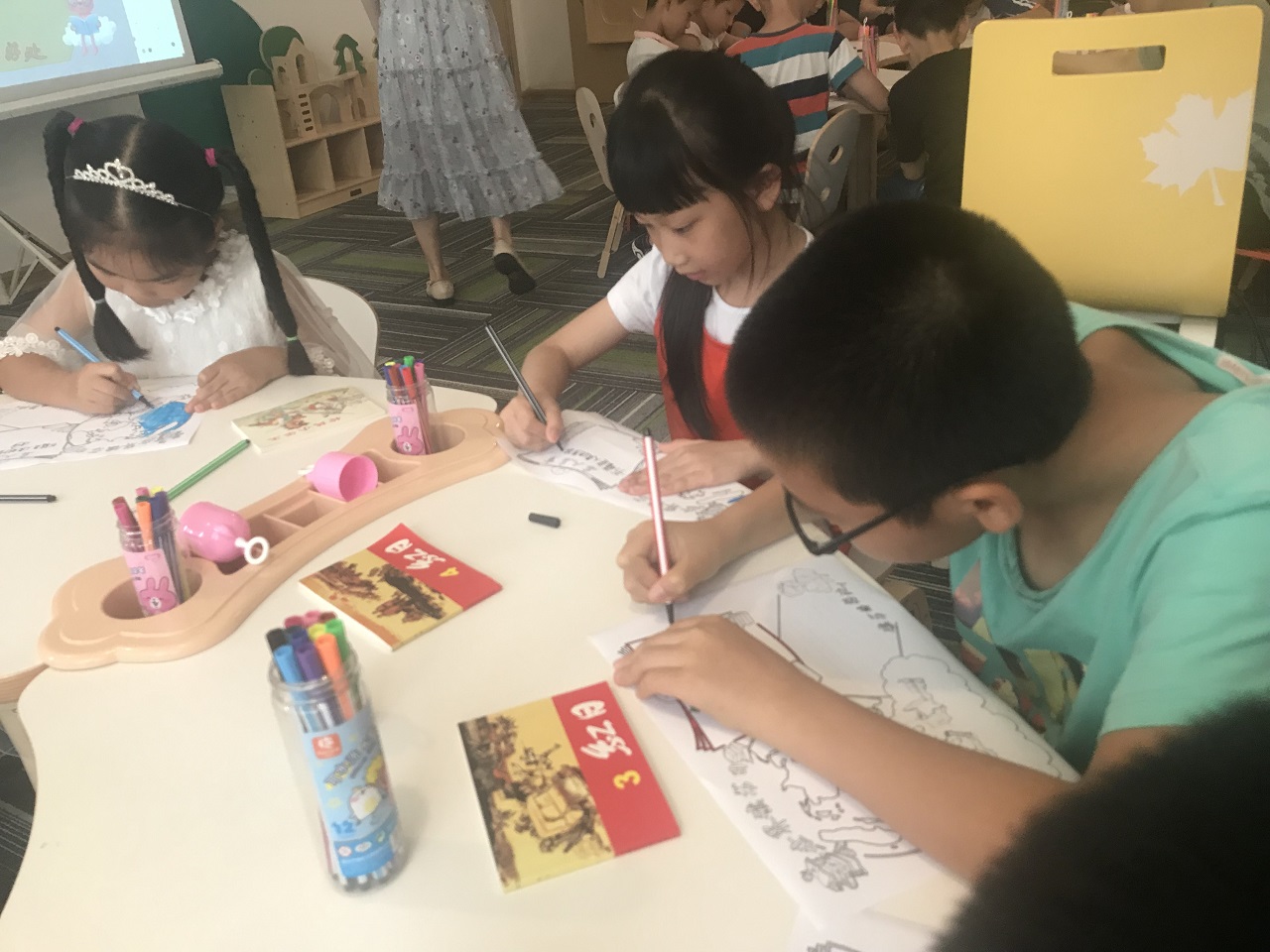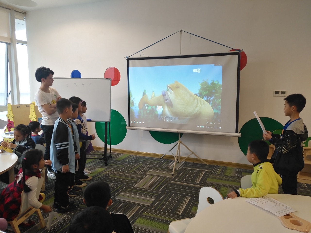 课堂上,小读者在专业老师的带领下,通过认识自己的声音,学习配音基础知识,感受人物性格特点之后,就开始观摩和进行配音练习了。在第一次配音课结束前的最后10分钟,还邀请家长一起进来观看小读者们的动画《熊出没》配音风采展示呢~ 而在21日的第二次课上,小读者们分组进行角色体会及表演,还完成了专属于自己的儿童影视剧或者公益广告的配音作品呢。棒棒哒~有木有~
