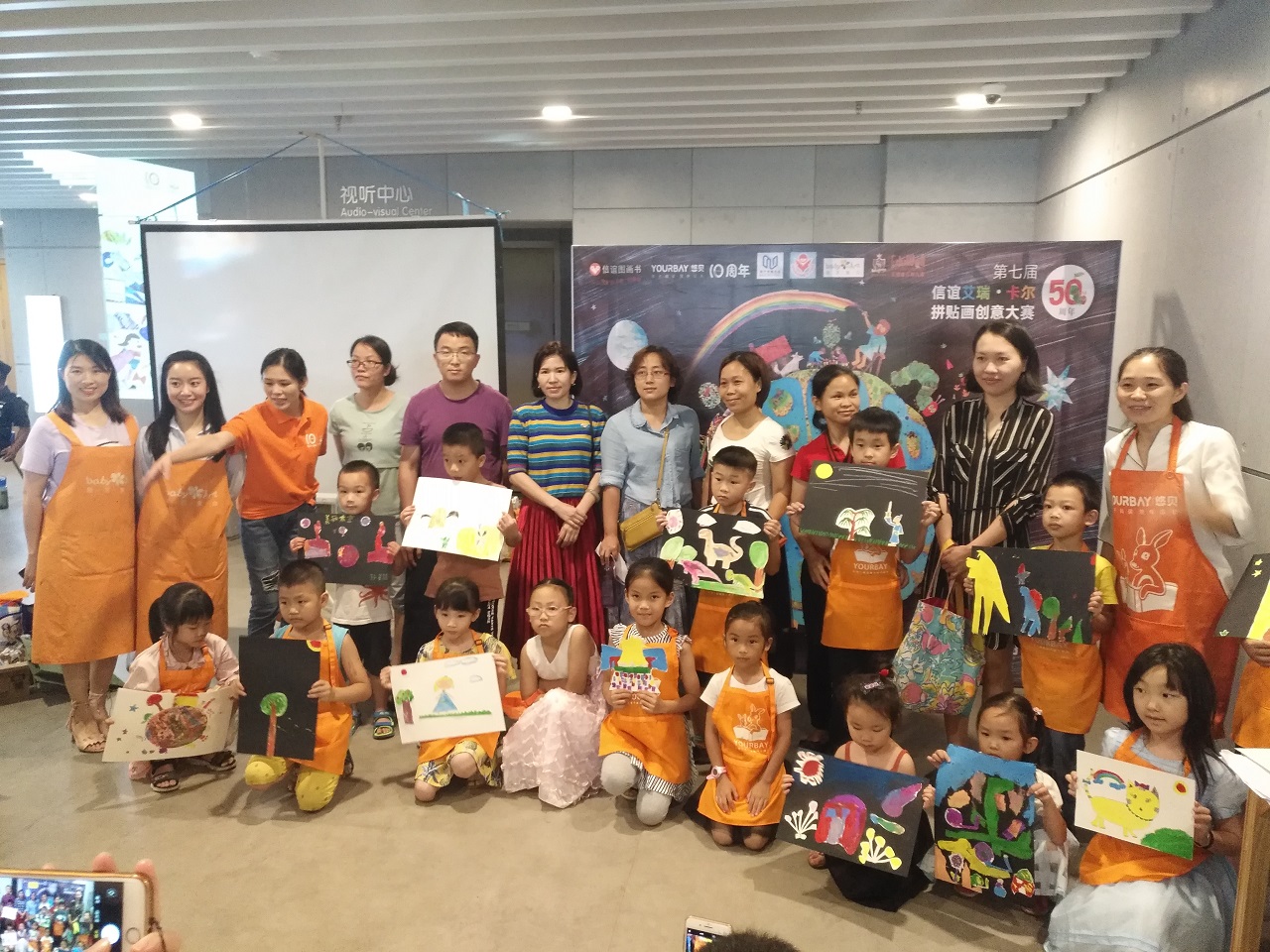 19日下午,共有25组家庭参加了第七届信谊艾瑞·卡尔拼贴画创意大赛南宁市图书馆分赛场的比赛。与其说这是一场比赛,不如说这是一场与大师作品的对话,孩子与爸爸妈妈一起观看艾瑞·卡尔的经典绘本剧《好饿的毛毛虫》,感受大师经典作品的童趣和艺术魅力,用学习到的创作技法,爆发想象力和创造力的小宇宙,绘出自己眼中的世界~