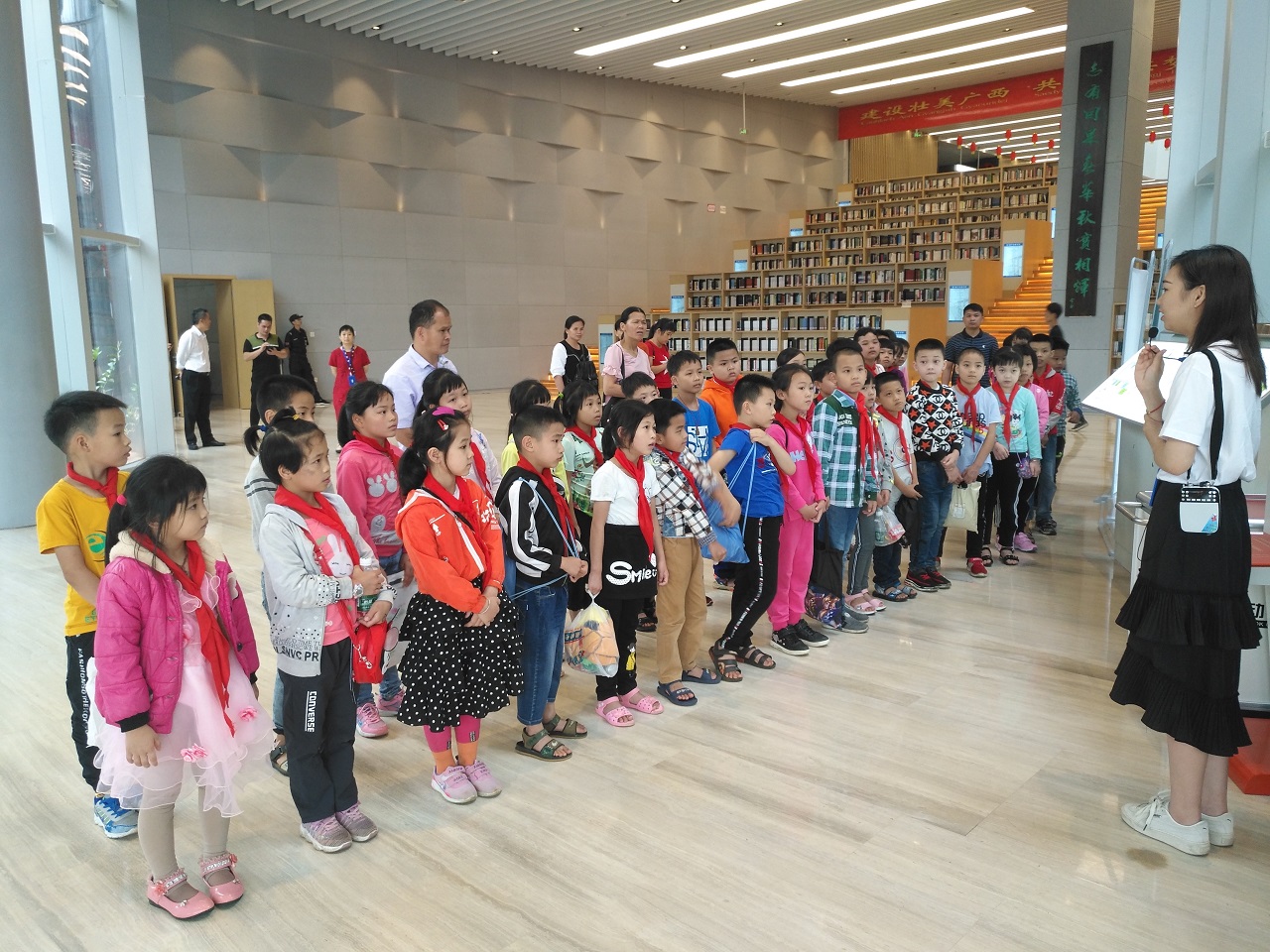 在2019年5月31日上午,“给你一把金钥匙,带你认识图书馆”活动为特别邀请的隆安县布泉乡岑山村小学的学生及老师代表一行50人如约开启。首先管理员大姐姐带着孩子们初步领略了南宁市图书馆新馆的风采,之后引导孩子们如何进行利用图书馆智能设备快速寻找到自己心仪的书籍、如何进行图书分类等图书馆基本知识,并留足一定时间给孩子们自行体验南宁市图书馆最具特色的少儿阅览室。活动结束之后,孩子们还参加了“闪耀连环星,欢乐伴我行”讲座,学习了连环画的起源、特点、连环画绘制手法等连环画相关知识和精彩的连环画故事。