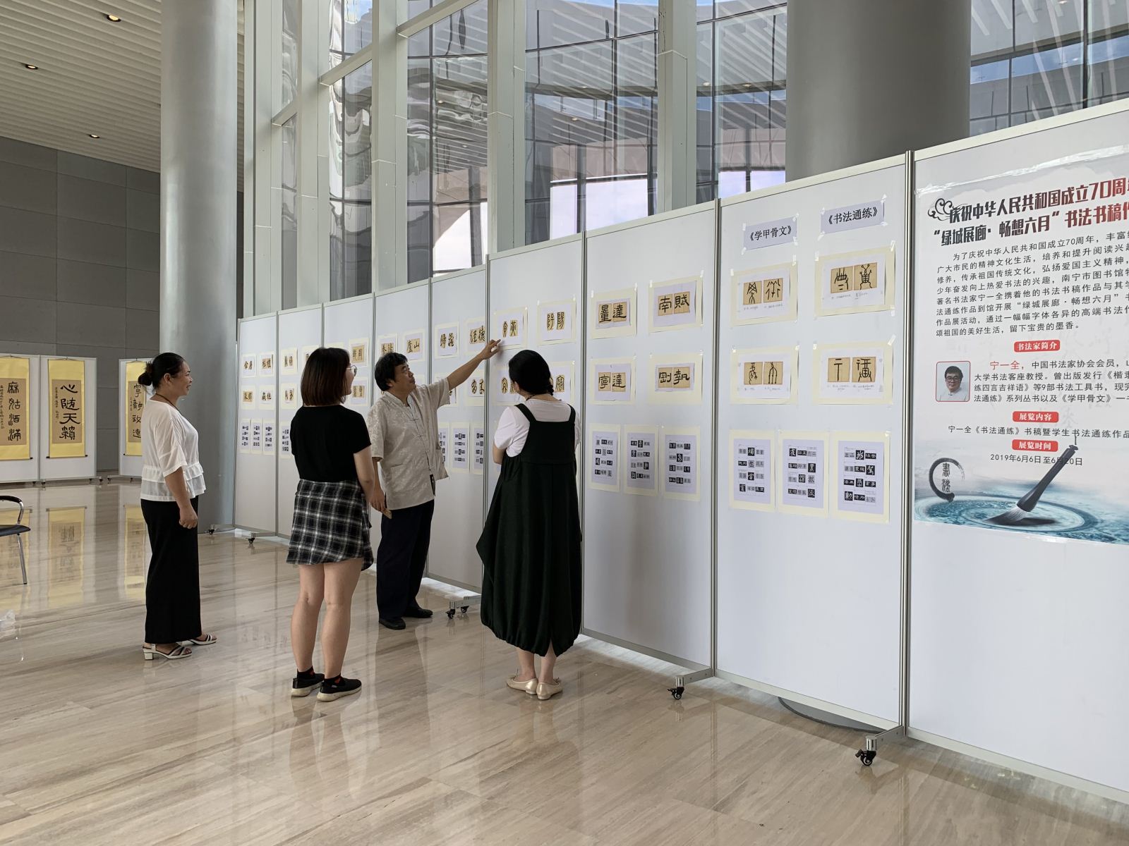 2019年6月6日起至20日,为了庆祝中华人民共和国成立70周年,深入实践社会主义核心价值观,进一步贯彻落实习近平总书记系列重要讲话精神,同时为丰富绿城南宁广大市民的精神文化生活,培养和提升阅读兴趣和艺术修养,南宁市图书馆特别邀请著名书法家宁一全携着他的书法书稿作品与绿城青少年的优秀书法作品,到馆开展“绿城展廊·畅想六月”书法书稿作品展活动,通过一幅幅字体各异的高端书法作品,歌颂祖国的美好生活,留下宝贵的墨香。