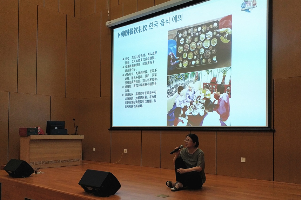 本期外语角活动邀请到侨梁韩语高级教师李英作为分享导师。李英老师是朝鲜族人,韩语就是她的母语,具有十多年的韩语教学经验,并且李老师常年在中韩两国间往返,对韩国文化更是有着极深的了解。她首先向读者们分享了韩国的美食文化,介绍了各种韩式美食与中国美食的区别和特色。接下来李英老师又向读者们介绍了韩文的起源,并开始教大家学说韩语,在这个环节中,李老师温柔的教会大家韩语中母音的念法以及子音中o的用法,并利用图文教大家一些果蔬的韩语念法及常用的韩语句子,读者们也积极地上台进行互动展示,收获颇丰。