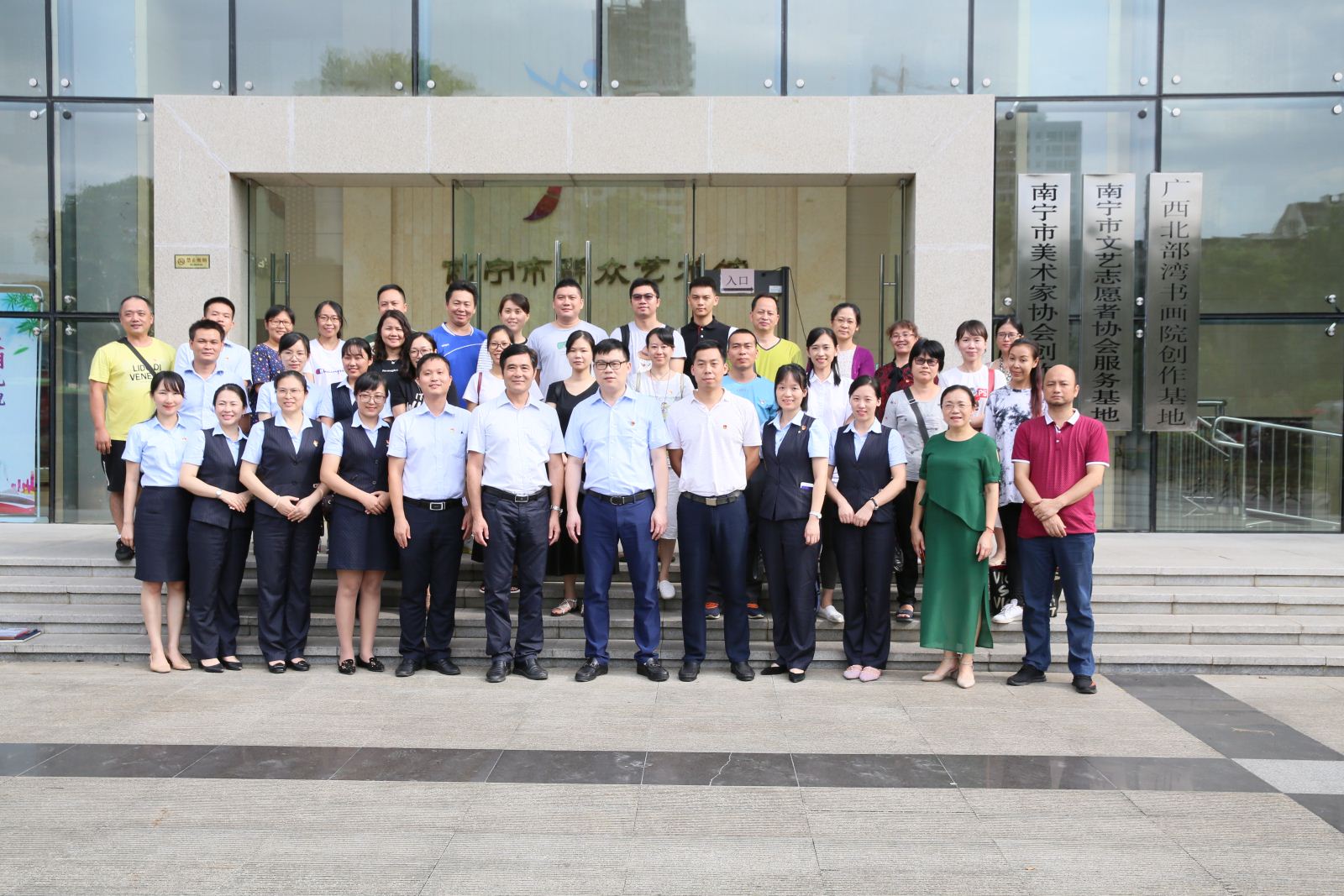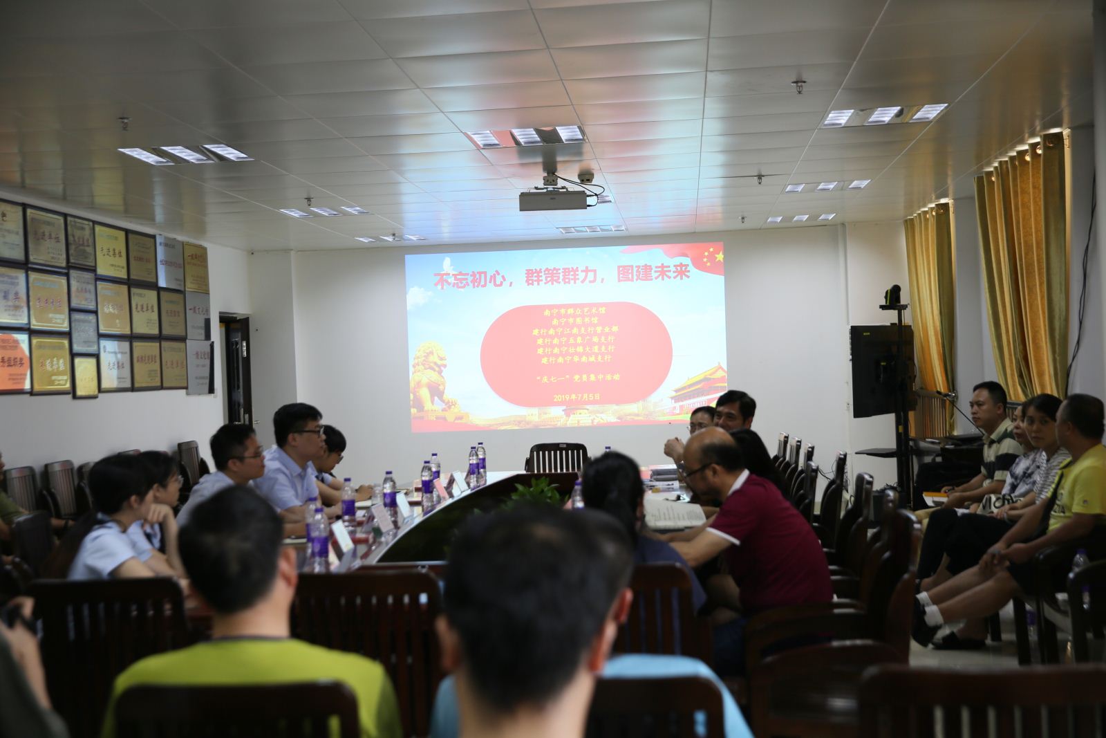 庆七一,支部联建携进。7月5日,南宁市图书馆党支部联合南宁市群艺馆党支部、建行南宁江南支行营业部党支部、建行南宁五象广场支行党支部、建行南宁壮锦大道支行党支部、建行南宁华南城支行党支部开展主题为“不忘初心,群策群力,图建未来”的党员集中活动日活动。活动通过学先进、谈感言、唱红歌、促担当,进一步弘扬奉献精神,增强党员的自豪感与使命感。