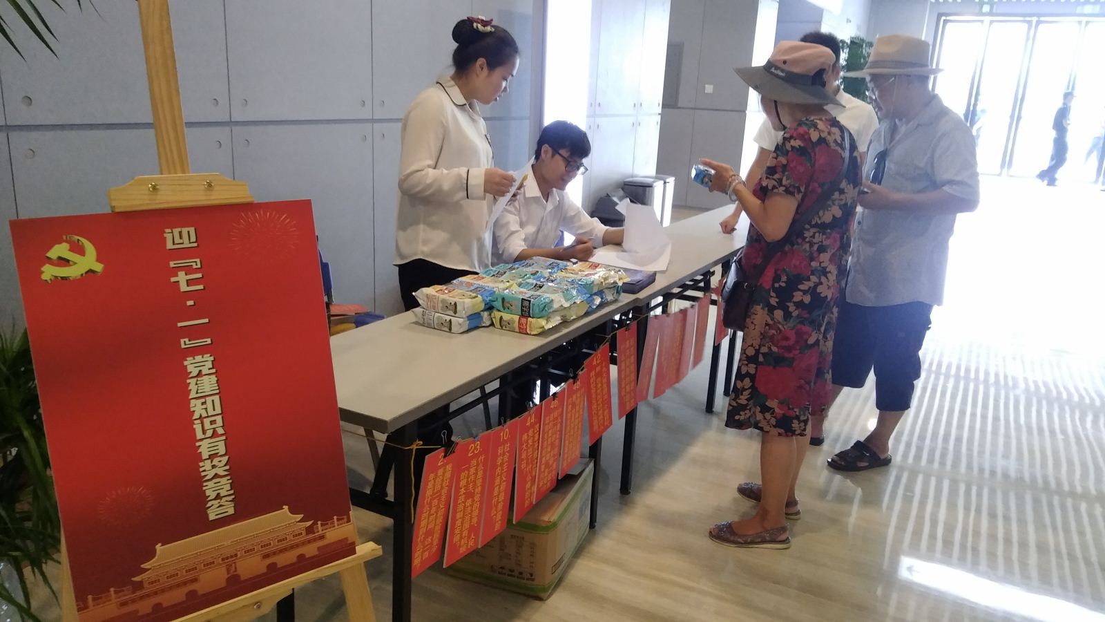 迎七一,党建知识竞答。6月29日,为迎接“七一”建党节,南宁市图书馆特别推出“迎七·一”党建知识有奖竞答活动,我馆精心准备的50道党建知识问答题吸引了不少读者驻足参与,每位参与读者答有所获,既掌握了知识又收获精美纪念品。