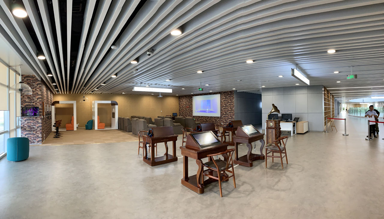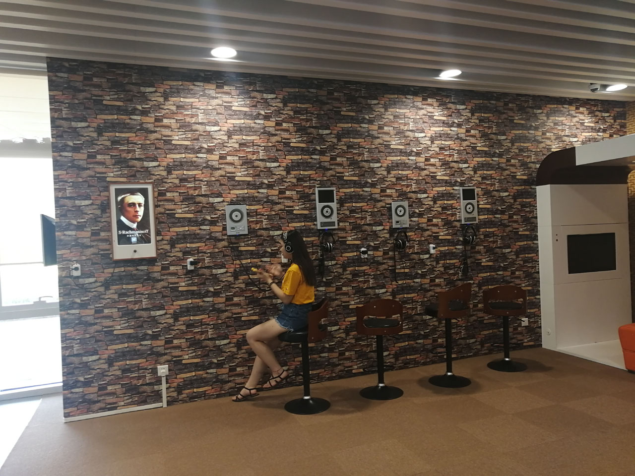 在微型音乐厅往左边的墙上装有五套挂式CD智能播放器,将CD装上后即可听歌。墙的左边有一套云CD唱片借阅机,可通过扫描里面的二维码将资源下载到手机。