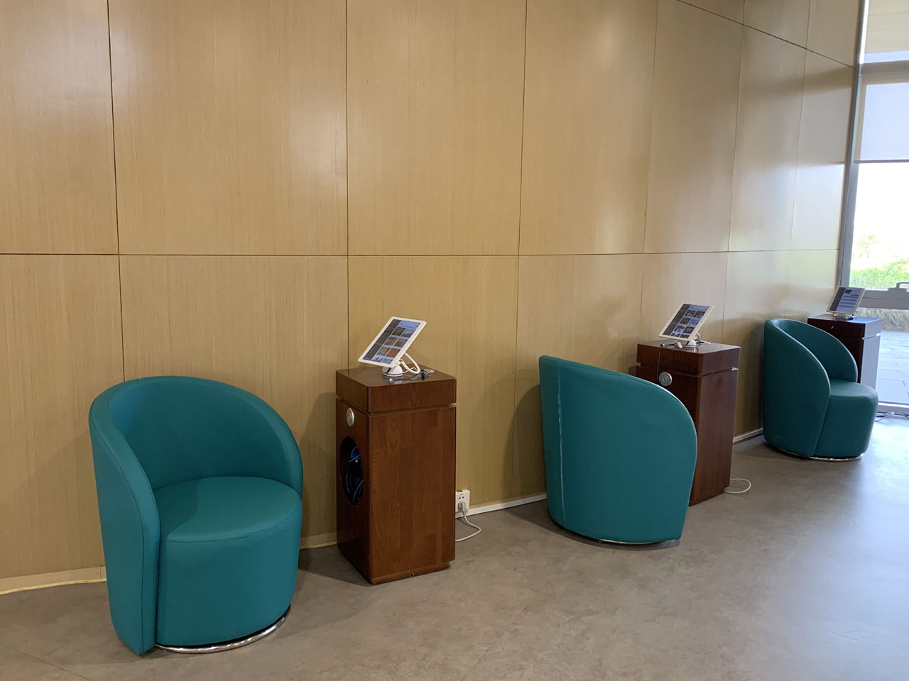 再往左边,放置有4套数字音乐盒PAD,读者可边听音乐边欣赏外面的风景。