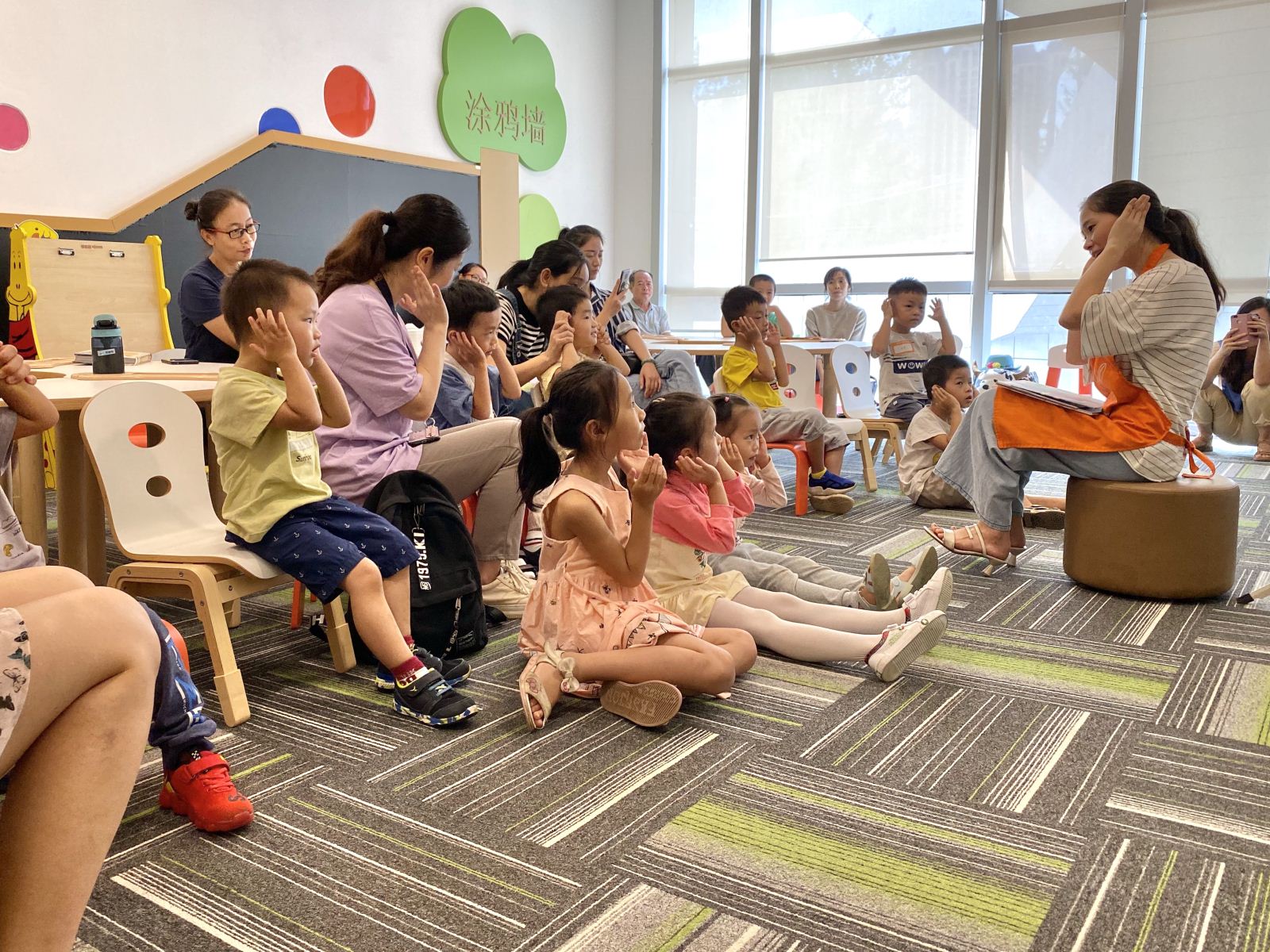 一根根小小的萝卜,传递的是被人惦记的温暖。故事巧妙运用了“循环”的手法,精彩的导入孩子们喜爱的重复性语言。孩子们在故事里潜移默化的学会关爱和分享,这真是个温暖的好故事。30组家庭近百人一起聆听了这个充满爱的温馨故事。