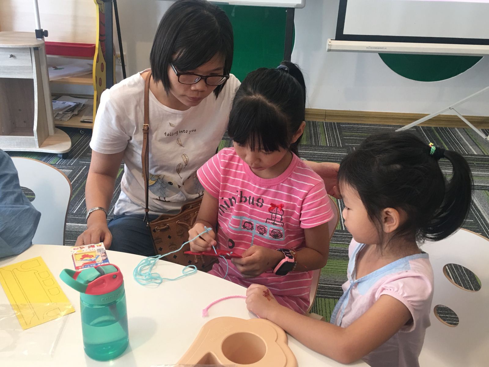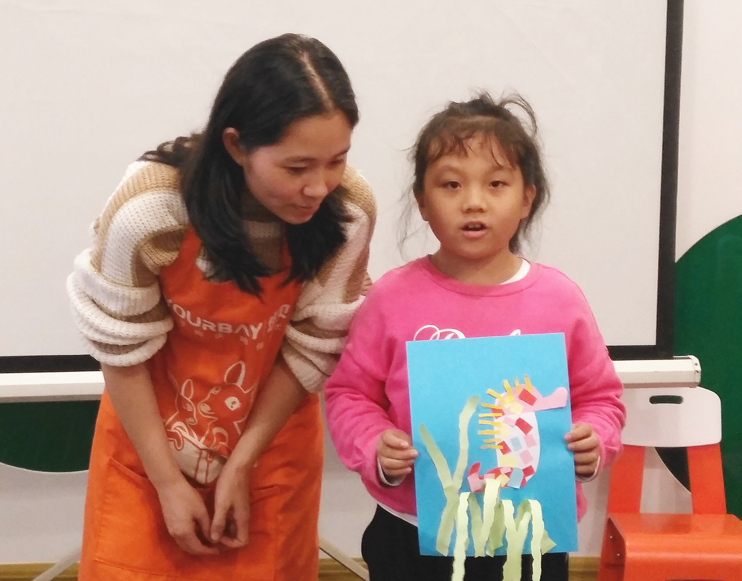 和妈妈一起进行手工制作海马先生,真开心!