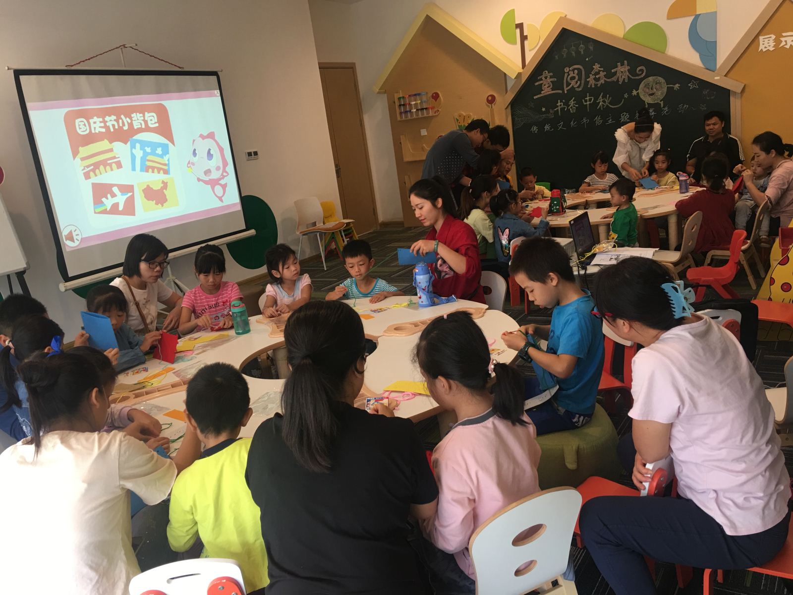 10月20日,20组家庭通过参加“童阅森林·中国小小追梦人”专题阅读实践活动,听主题课程,动手制作国庆节小背包,庆祝中华人民共和国成立70周年。