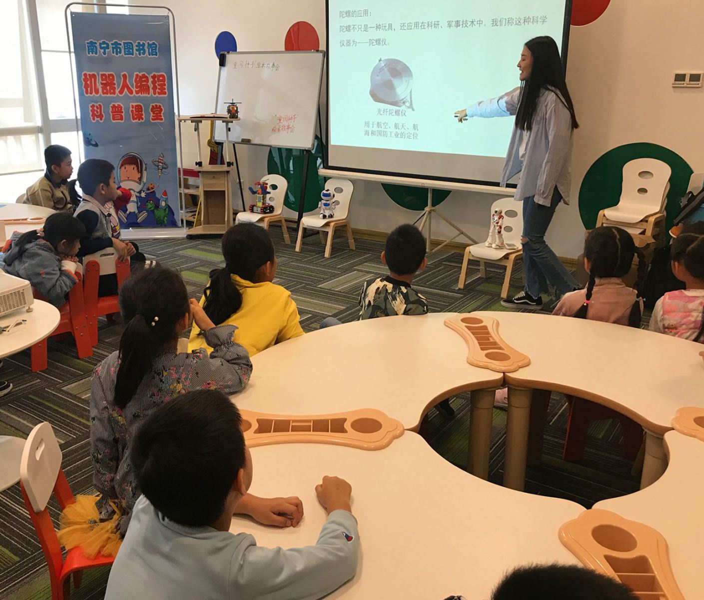 11月23日上午,南宁市图书馆的“机器人编程课堂”迎来了20名对科技创新充满热情的少年儿童。本次科普活动的主题是“陀螺发射大作战”。孩子们在课堂上初步认识了解了机器人编程活动并动手制作了一套陀螺发射套装。