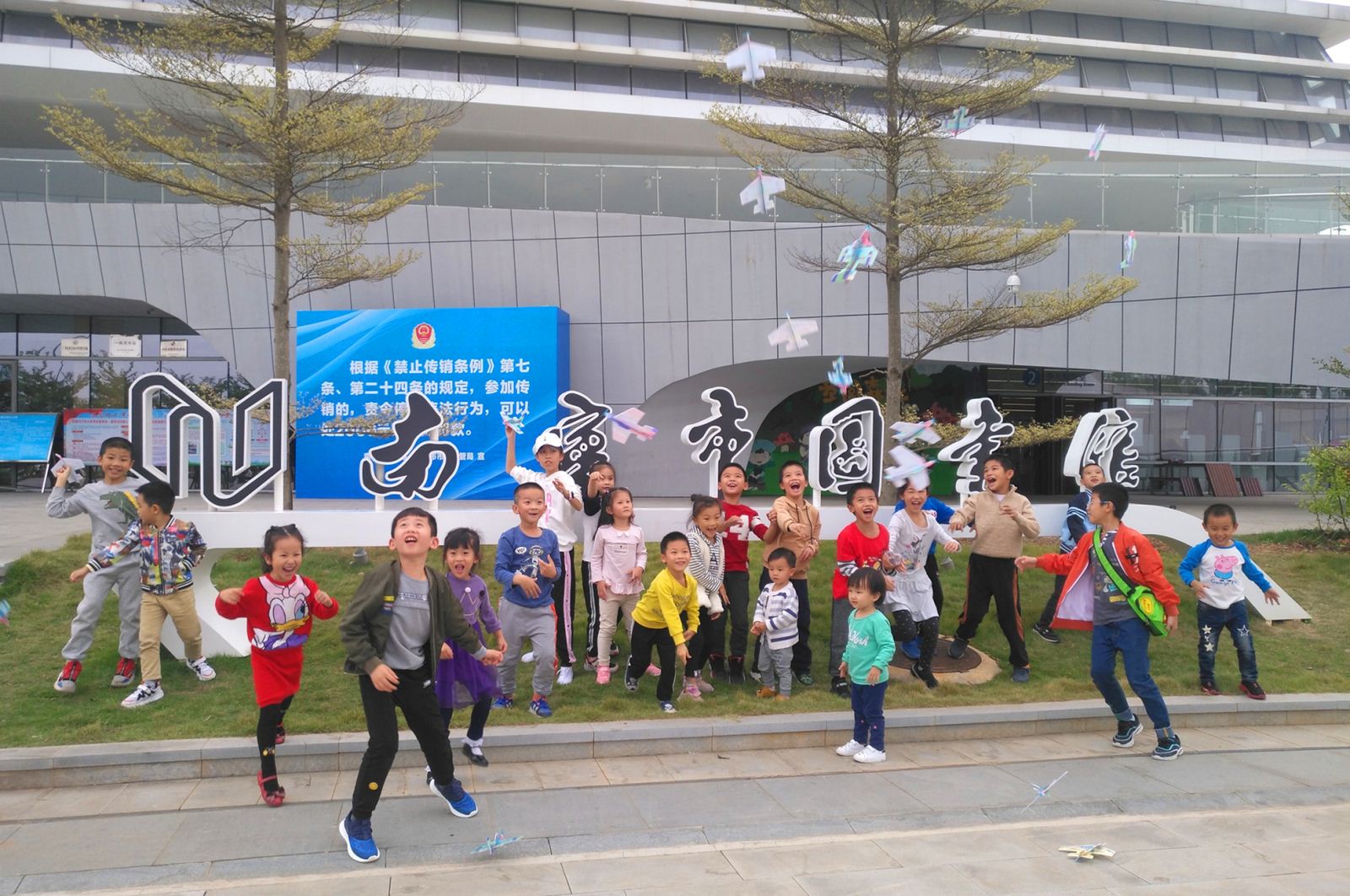 大家还带着自己的飞机到图书馆的广场上进行了自由飞行呢!