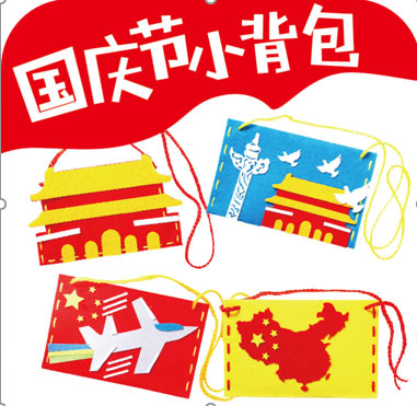小朋友和家长心怀对祖国的崇敬和热爱,一针一线缝制“国庆节小背包”。