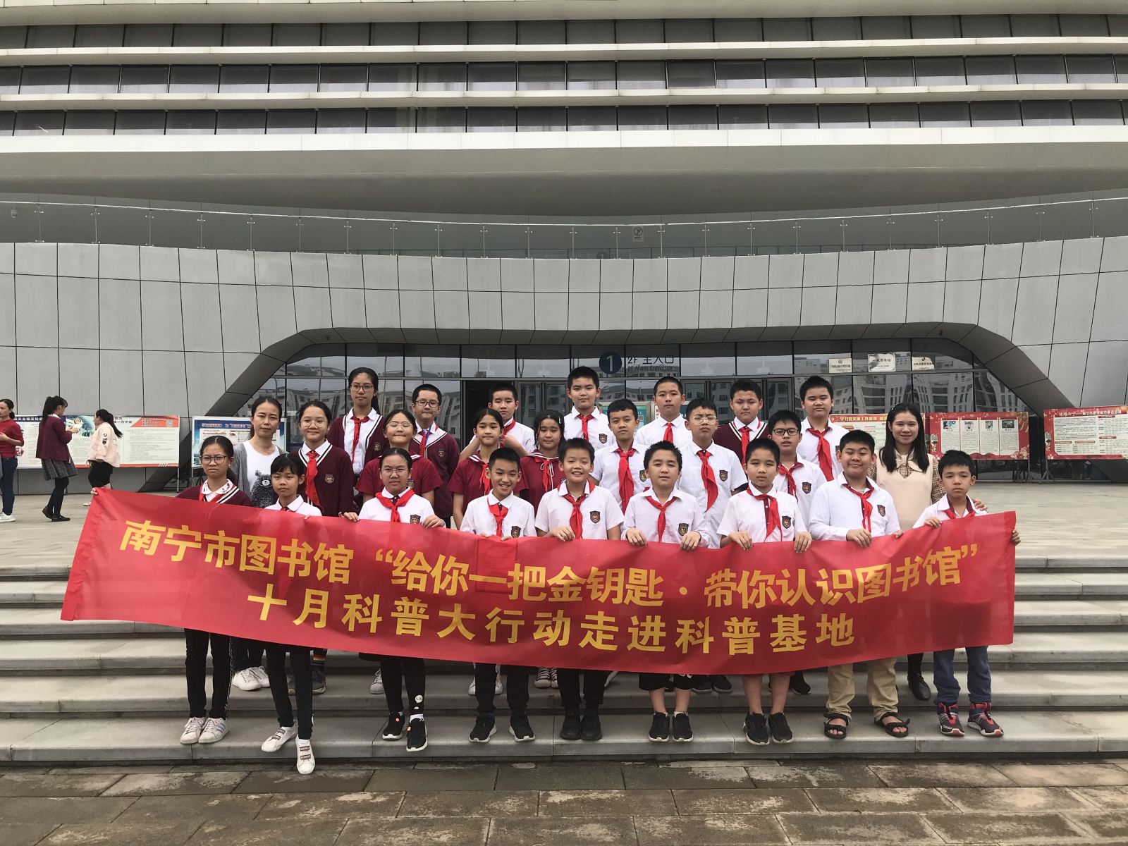 2019年10月25日,君武小学近百名小学生来到科普基地南宁市图书馆进行“给你一把金钥匙·带你认识图书馆”暨十月科普大行动快乐研学活动。