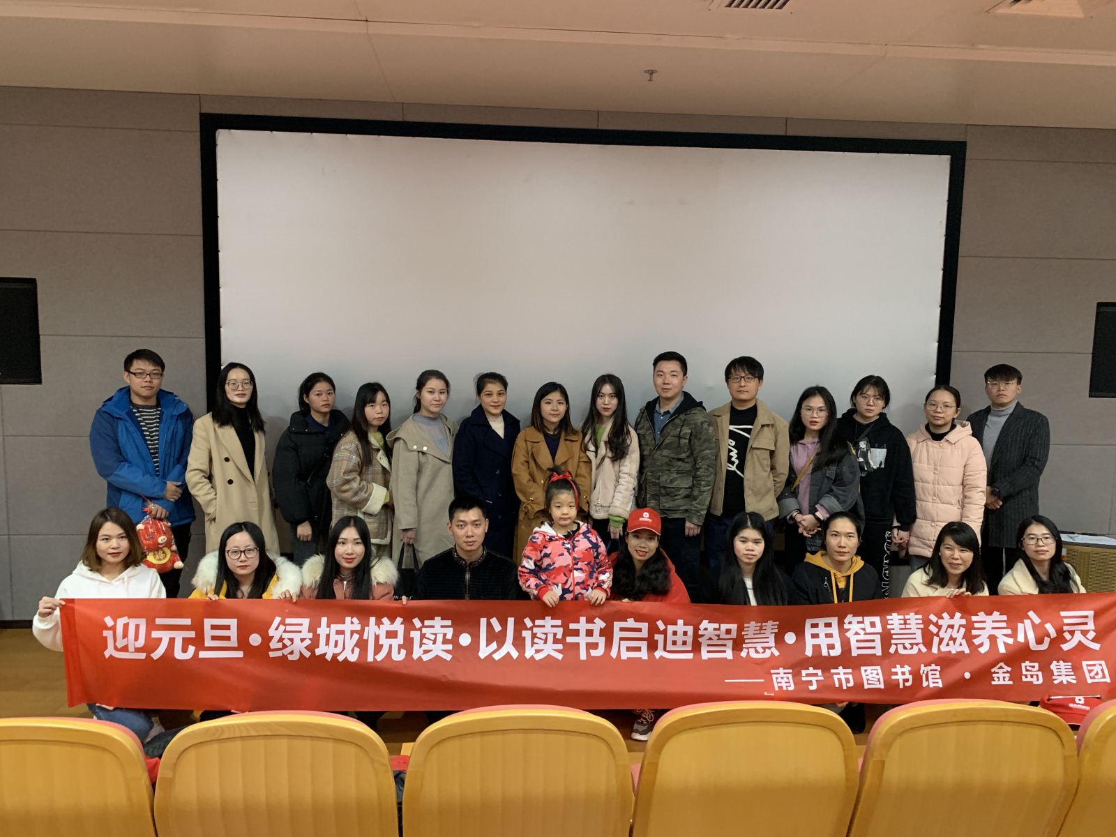 在这个飞速发展的时代您多久没有完整读一本书了? 2019年12月28日,为全面贯彻落实习近平总书记建设书香型社会的要求,加强与企业间的文化联系,实现资源优化配置,合作共赢,与企业互帮互助,建设学习型企业,能够以一个更加奋进、认真、求知的企事业单位昂扬面貌踏入全面建成小康社会的新时代,在2020年元旦即将到来之际,南宁市图书馆与南宁市金岛爱心社共同举办了“迎元旦·绿城悦读·以读书启迪智慧·用智慧滋养心灵”读书会。