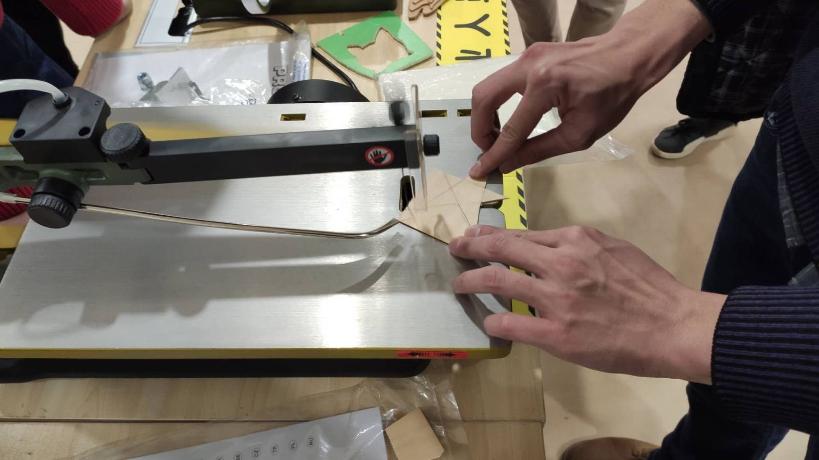 培训课程将理论讲解与实际操作相结合。学员们了解3D打印的基本知识后,在老师的指导下进行3D建模,并利用FDM3D打印机、超快速3D打印机、食品3D打印机、3D打印笔等不同设备,现场打印杯子、单车模型、眼镜架等作品;学习模型机器人编程,通过编写程序控制机器人的运动;十分钟内,现场组装成功了教学用DIY无人机;在台式电热丝泡沫切割机上,按照泡沫板的图案,切割出不同形状;针对双速超级曲线锯机、微型带锯机、微型木工车床、微型台式钻铣机的不同性能,对木材进行切割、打孔等。