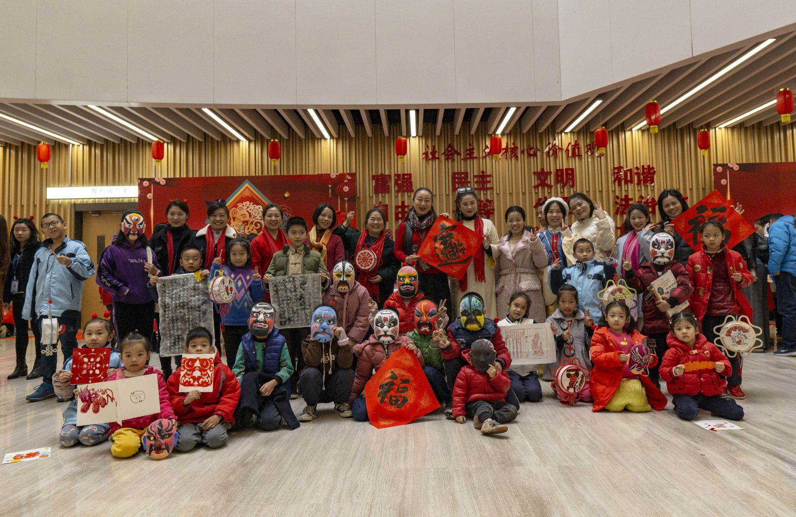 作为主要活动区的南宁市图书馆二楼大厅人山人海,场面火爆,手工活动区域,75组家庭汇聚一堂,体验传统手工的魅力,欢声笑语连绵不断,参与活动的绿城小读者时不时伸头偷看旁桌的做手工的模样真的让人忍俊不禁;而写春联处,书法家们挥斥方遒,书写一条条充满吉祥、喜庆的春联,把祝福送给大排长龙的读者;猜灯谜处也是人头攒动,绿城读者们都绞尽脑汁的捧着谜面,发挥自己的聪明才智想要猜出谜底,获取新年小礼品。参与活动的读者们每个都言笑晏晏,脸上洋溢着开心满足的神情。