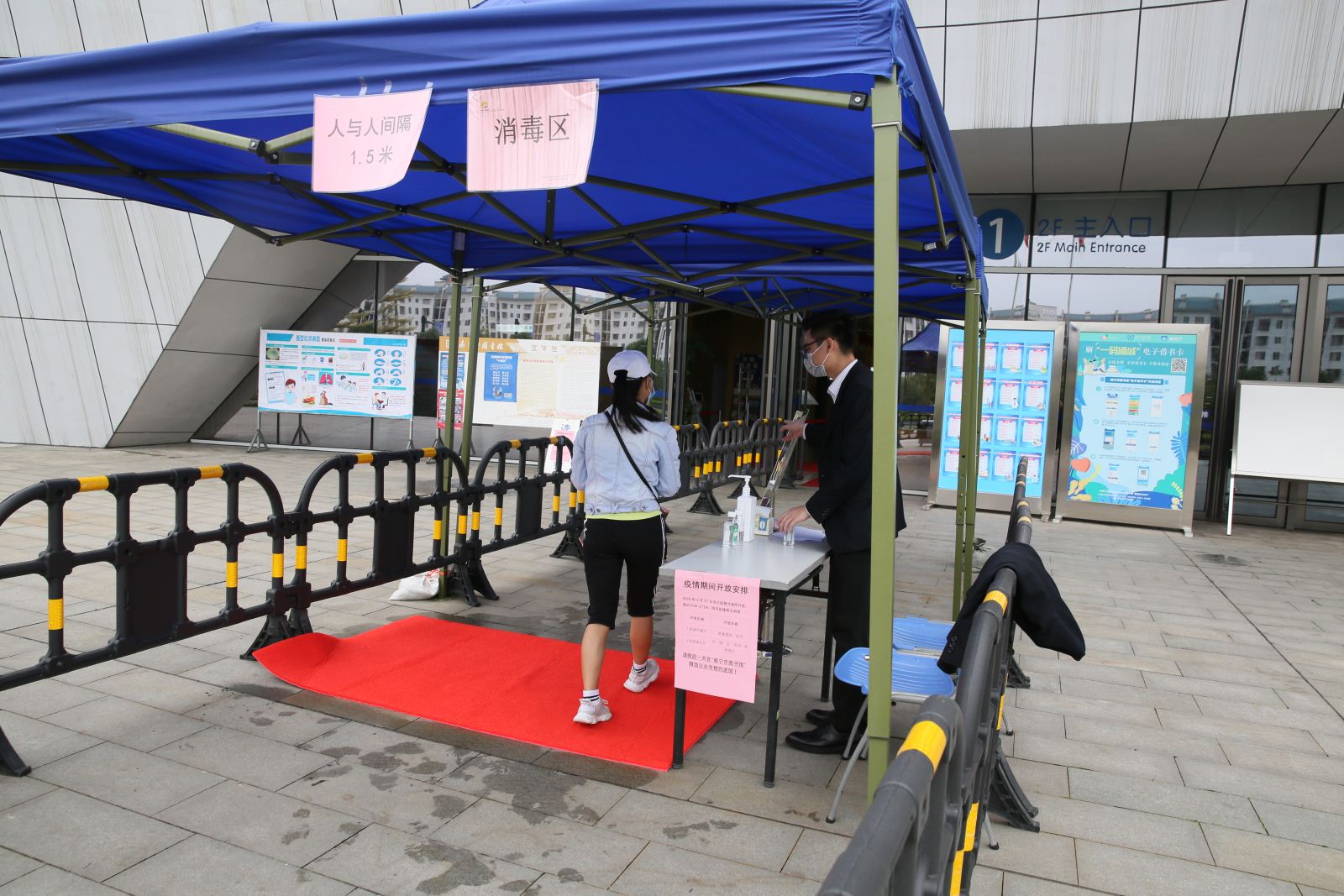 在恢复开放服务的同时,南宁市图书馆坚持把疫情防控放在首位,做好三个坚持:一是坚持做好场馆消毒,每天对全馆进行2次全面消毒,中午12:00-13:00对开放区域进行清场,并对开放区域和设备设施进行重点消毒;二是坚持做好文献消毒,运用专业设备及时对读者所还文献进行消毒杀菌,并引导读者外借文献时先用图书消毒机进行图书消毒;三是坚持做好到馆人员防护,在各出入口对入馆读者进行双手消毒,在洗手间、茶水间均配备含抑菌功能的清洁用品,在公共服务区域配置免洗消毒洗手液、一次性手套,建议读者使用。