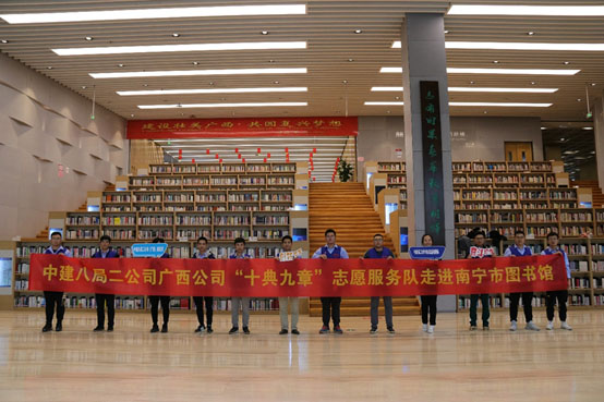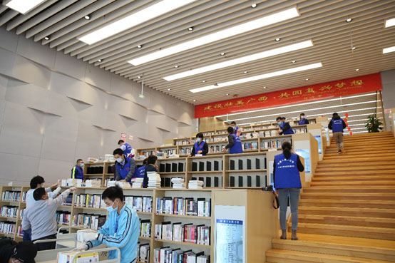 为弘扬五四精神,增强广大青年立志献身志愿者事业的光荣感、责任感和使命感,南宁市图书馆联合中建八局广西公司开展图书馆志愿服务活动。4月24日下午,中建八局广西公司团总支部前往南宁市图书馆新馆开展志愿服务活动。他们与图书馆员一起,把图书分类,整理上架,并将“错位”的图书归位,细致认真地完成了安排的工作。他们不仅给图书馆带来了青春的朝气与阳光的活力,也体现出年轻一代对公益事业的爱心与无私奉献的精神。