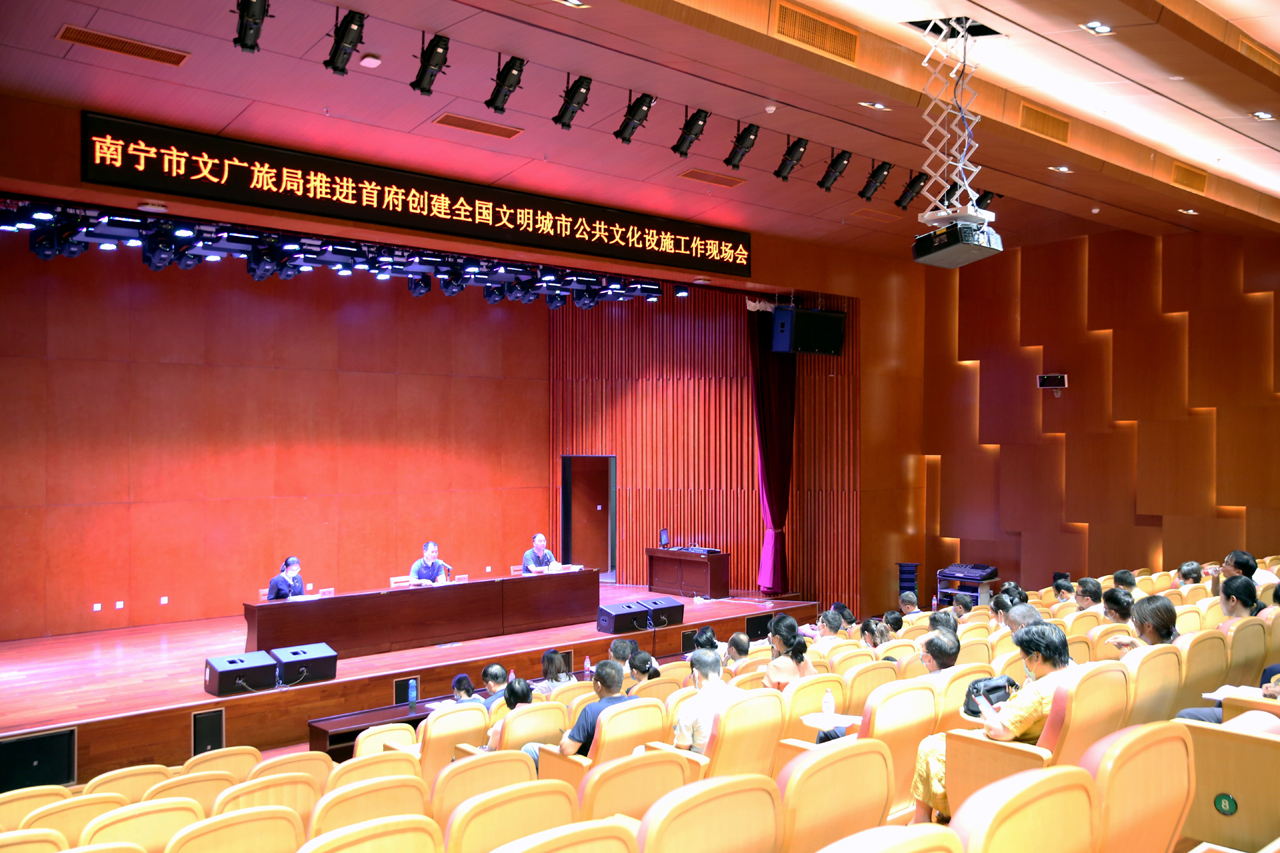 为深入学习贯彻习近平总书记关于精神文明建设的重要讲话精神,全面贯彻落实党中央、自治区党委和市委关于文明城市创建工作的部署要求,推进南宁市全国文明城市创建工作,南宁市文化广电和旅游局于6月23日在南宁市图书馆召开了推进首府南宁创建全国文明城市公共文化设施工作现场会。市文广旅局党组书记、局长黄永久,党组成员、副局长史胜明,党组成员、副局长樊琴,各县(区)、开发区文化广电和旅游行政主管部门领导,各县(区)图书馆、文化馆馆长及市文化场所、旅游集散中心负责创城工作的领导参加了现场会。
