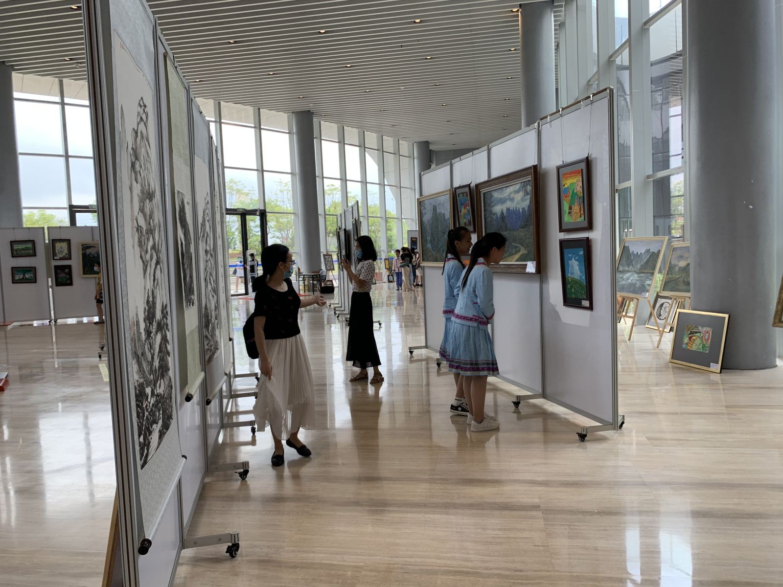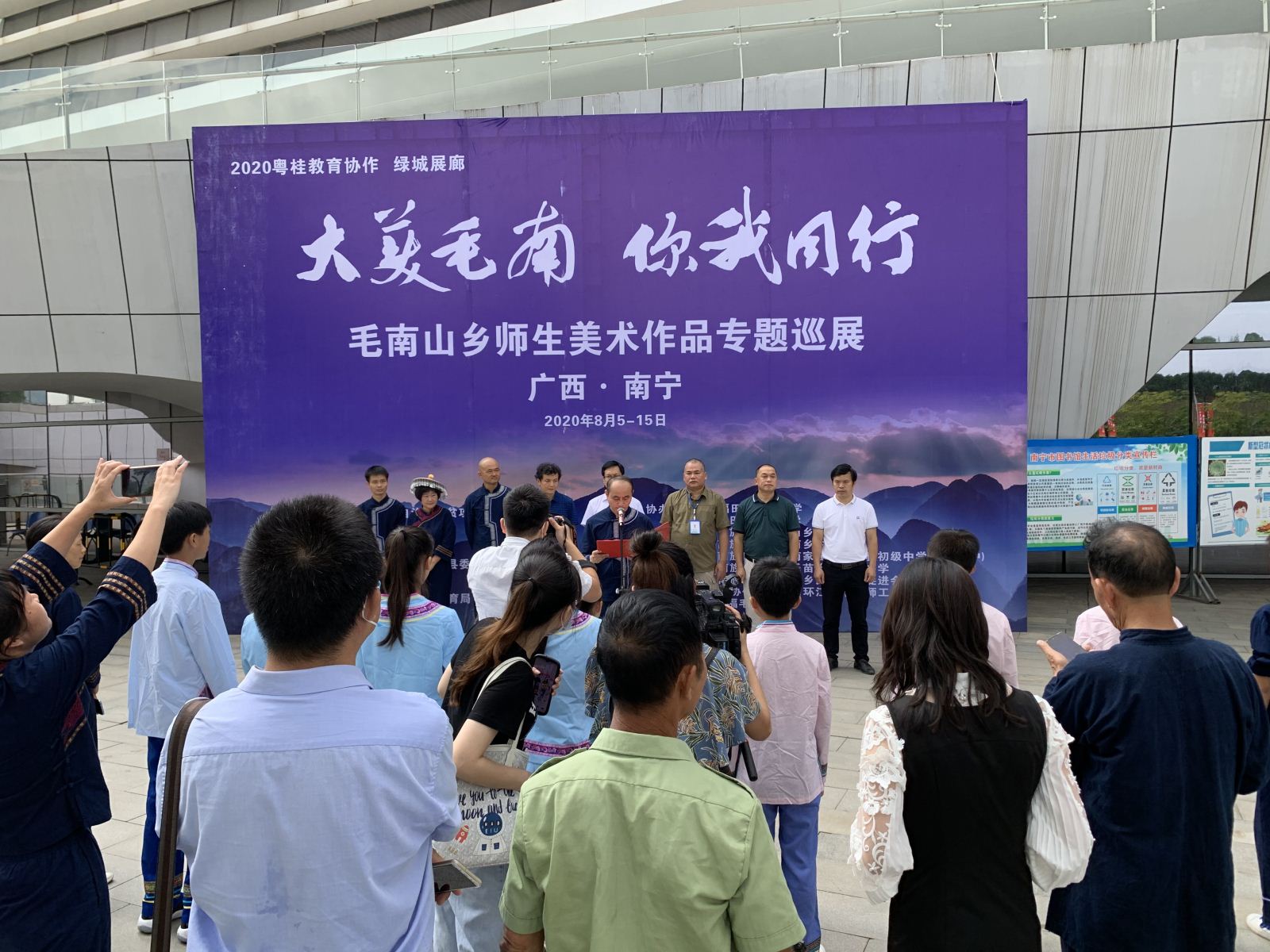 为充分展现毛南山乡人民向贫困决战的伟大斗争和粤桂对口教育帮扶工作所取得的成果,8月5日,南宁市图书馆携手环江毛南族自治县脱贫攻坚指挥部联合主办的“大美毛南,你我同行”——毛南山乡师生美术作品专题巡展在南宁市图书馆启动盛大开幕仪式。南宁市图书馆表示画展充分展现了广西独具特色的毛南族文化,从画作中感受到环江木论喀斯特世界自然遗产地的美丽风光,毛南山乡师生美术作品专题巡展开幕式非常成功也充分表达了广西壮乡人民坚决打赢脱贫攻坚战的决心。