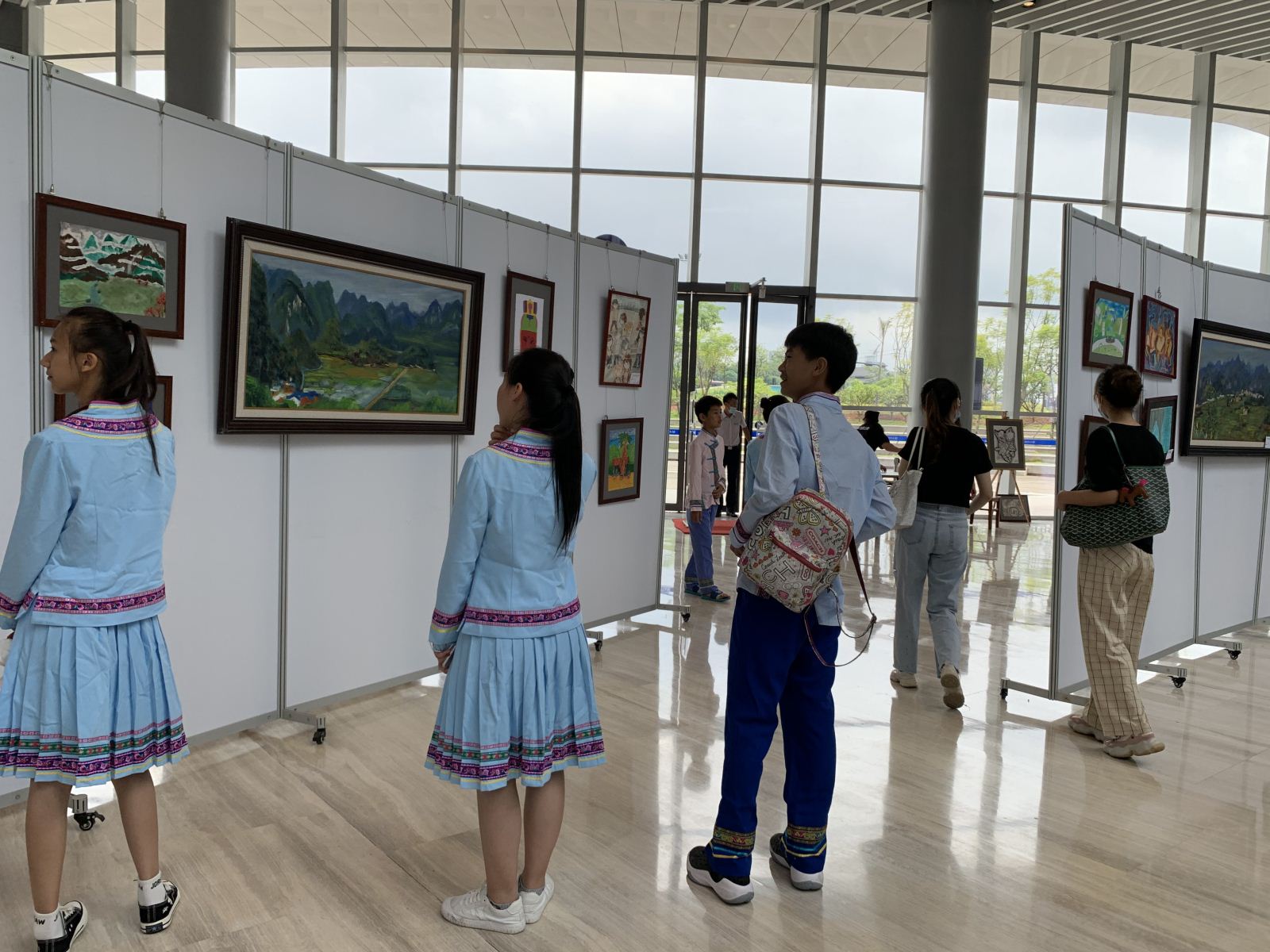 此次展览将展出学生作品380幅,教师作品120幅,学生作品以油画棒、国画、水彩水粉画为主,教师作品以油画、国画为主。题材主要展现了毛南山山乡独特的喀斯特地貌风景和人民脱贫后的感恩之情、粤桂帮扶合作的兄弟情谊、抗击新冠疫情的家国情怀。画展作品题材丰富,画风多样,富有创意。