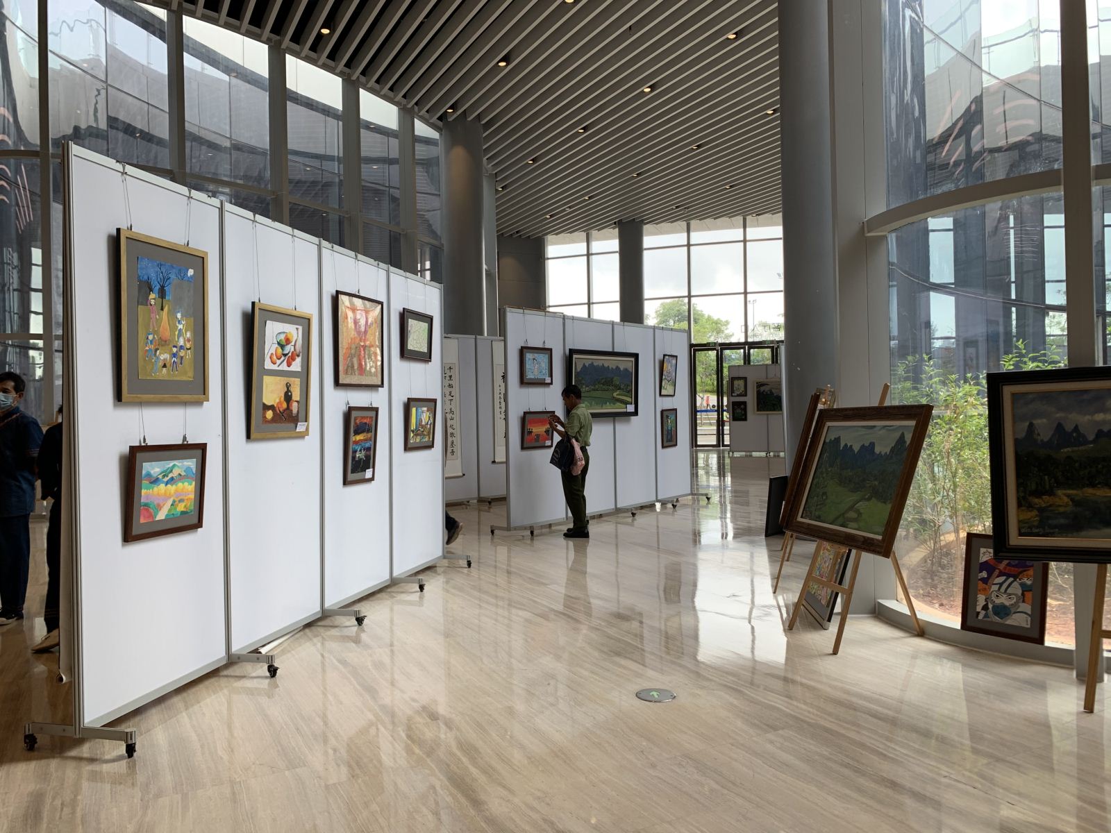 本次展览在南宁市图书馆一楼城市客厅展出,布展现场精心布置,画作错落有致,为观展读者创造优美舒适的的观展环境。展览期间,许多读者朋友在画作前长久伫立,细细品味和观赏,纷纷予以高度评价。
