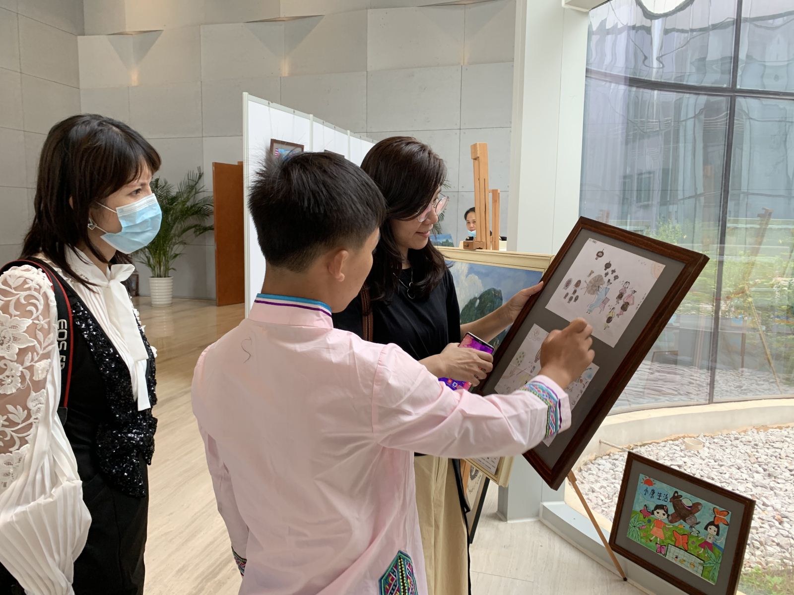 活动现场,参加巡展的小画家还向读者朋友介绍起自己的画作,用天真烂漫的视角去感受毛南山乡的民族风情,表达了对家乡的热爱和对未来的美好憧憬,稚嫩可爱的佳作让读者朋友连连赞许。