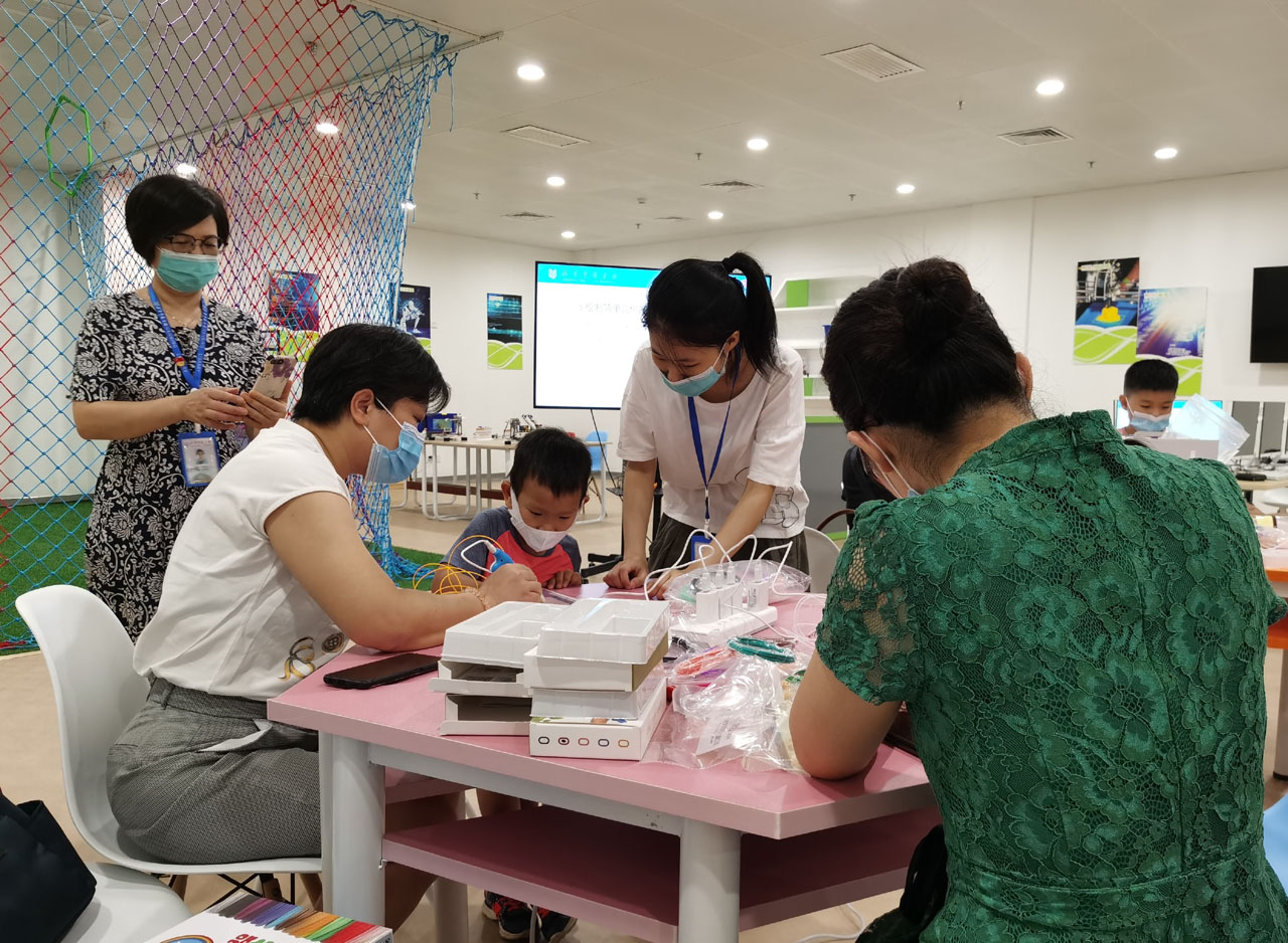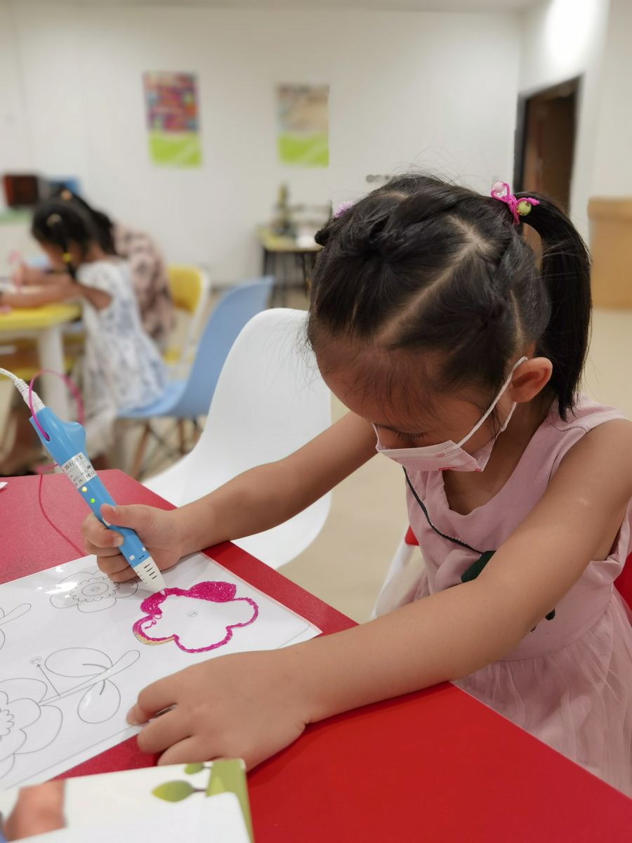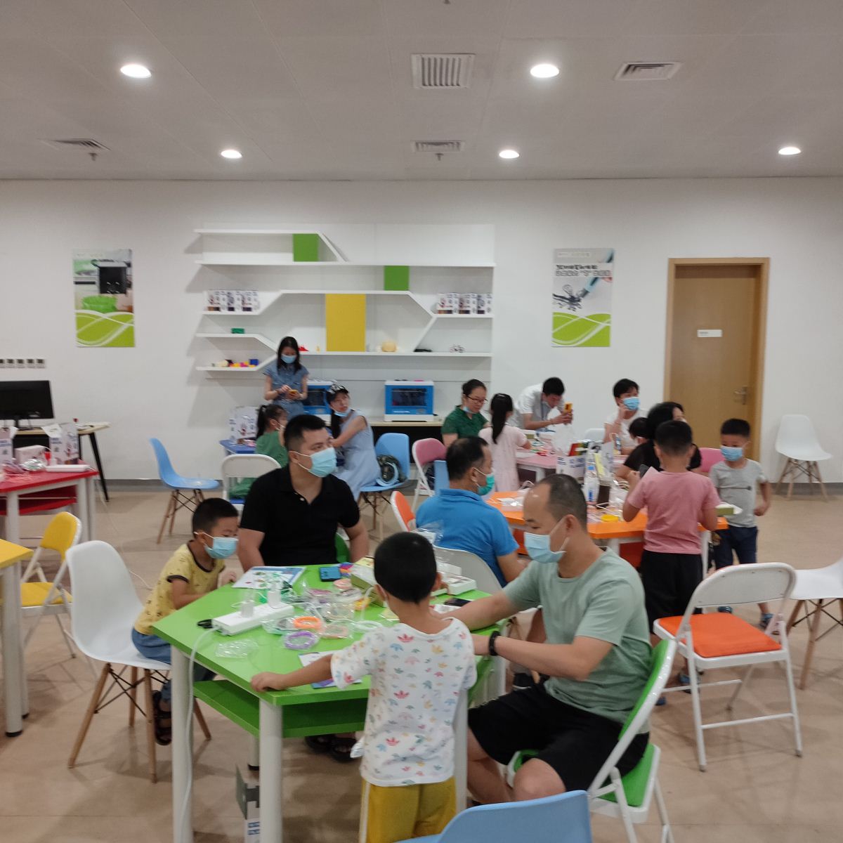小朋友和家长们一起动手操作,体验这种新奇的打印方法。首先,分析物体的结构,把物体分解成几个平面图形的连接,确定打印的思路。接下来就是打印各个平面图形,当加热完成的材料从笔头出来时,先画出图形的外框,再细致地填充图形的内部。3D打印笔能加热融化特定的材料,让材料像“墨水”一样从笔尖出来,在绘制过程中逐渐冷却成型。小朋友和家长们分工合作,共同努力,经过层层堆叠打印,组装连接,打印出了许多精美的作品。活动结束,小朋友和家长们主动与工作人员一同整理现场的物品,清理垃圾,把文明习惯融入各个小细节中。
